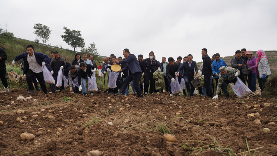 礼赞劳动之丰:田间赛场挥汗水,干群同心庆丰年。丰收,最终要回归到创造它的劳动者身上。在河程村举行的马铃薯采收比赛,将庆典推向了又一个高潮。镇、村干部与村民们一同走下田地,在欢声笑语中,于金黄薯田间体验收获的辛劳与快乐。这片热火朝天的景象,是对“劳动最光荣”最直接的礼赞,也展现了榆盘镇干群同心、协力奔向乡村振兴的昂扬斗志。