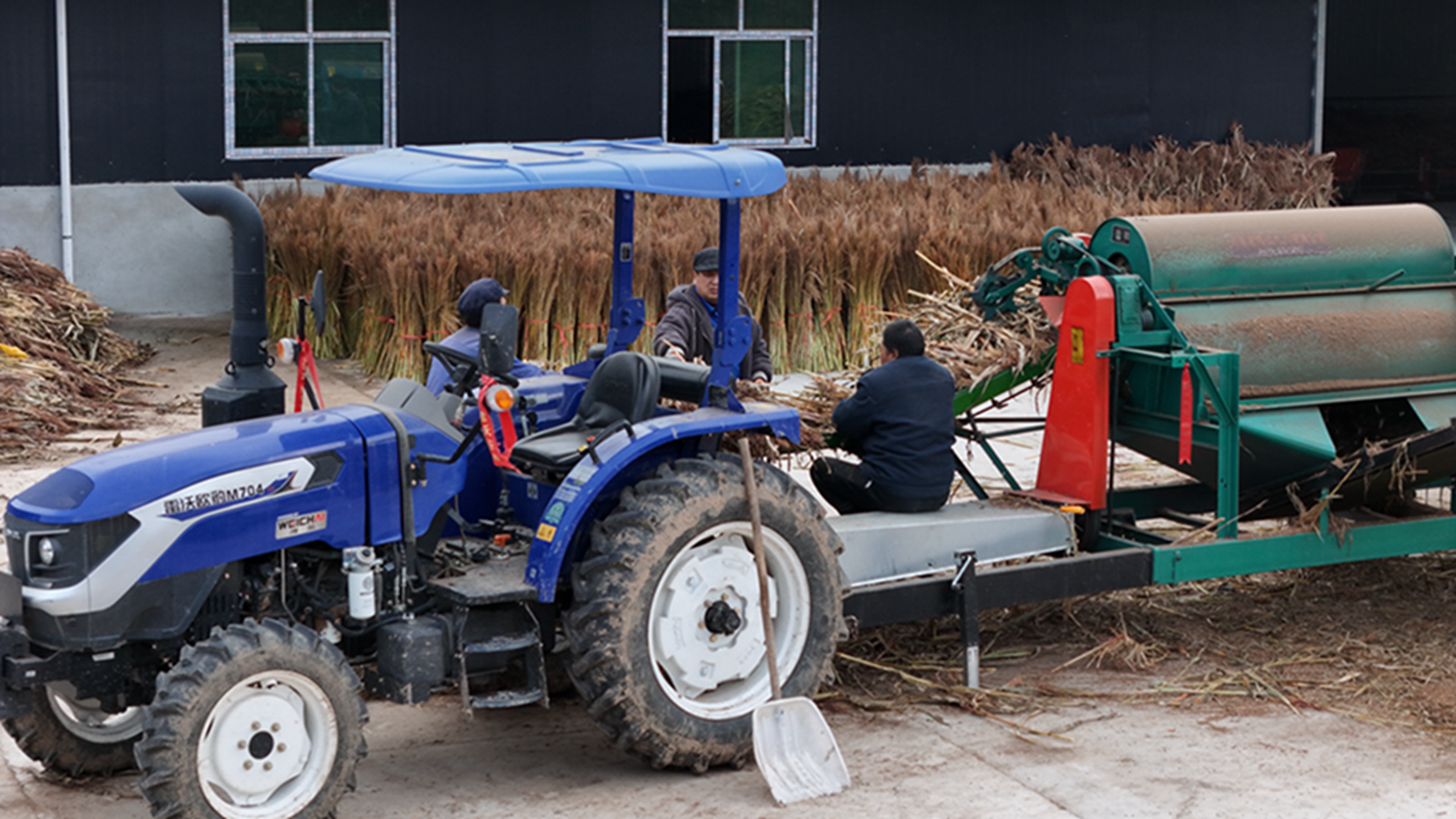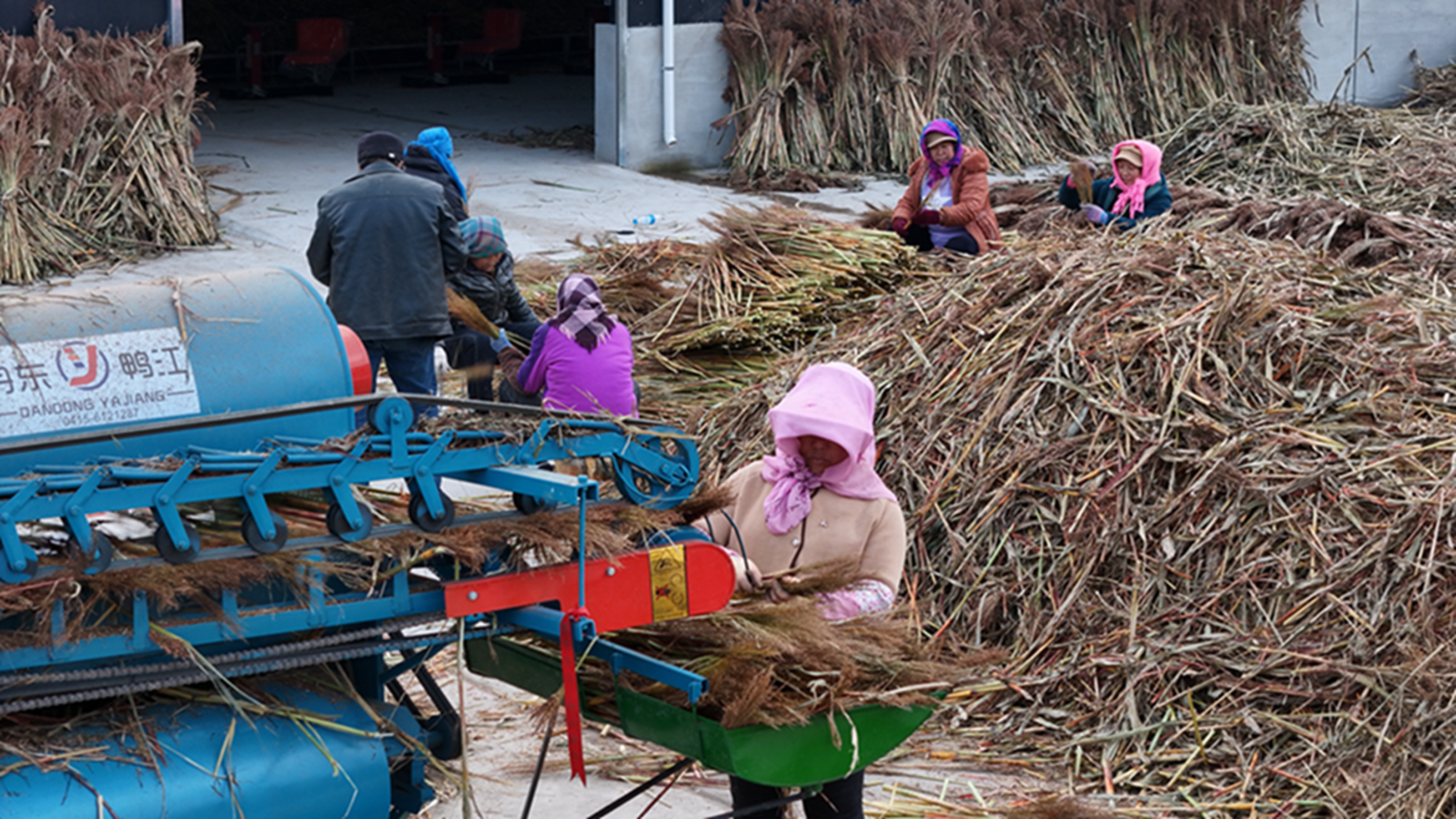 为保障原材料稳定供应,村里在年初的种植结构调整中,积极与周边农户及村集体对接,扩大高粱种植面积,如今全镇高粱种植面积已达1500余亩,为加工厂投产运营提供了原料保障。目前,加工厂已正式进入规模化生产阶段,每天有30名左右劳动力参与高粱脱粒、笤帚轧制等工序,在有效增加村集体经济收入的同时,让周边群众实现了“家门口就业”,联农带农、助农增收的效益进一步凸显。