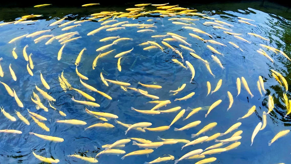 冷水鱼养殖基地,同样充满生机。董庄村、青山村的流水鱼池里,清澈的泉水潺潺流动,金鳟、虹鳟鱼在水中灵活穿梭,偶尔跃出水面,溅起阵阵水花。养殖户捞起一网鲜鱼,鳞光闪闪的鱼儿鲜活肥嫩。“这个夏天,我们的生意非常火爆,不光是当地游客,还有全国各地的游客都慕名而来了,尤其是周末客人坐满院子,都是冲这里的新鲜空气和农家味来的,一天忙下来,感觉特别充实。”