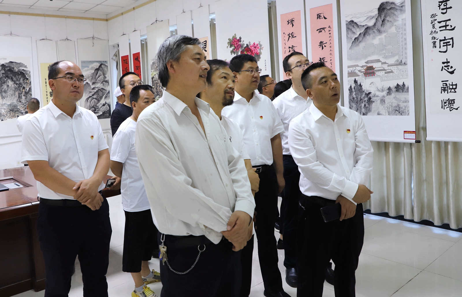 书画展共遴选了全县广大党员干部和艺术家们书画作品100余幅,作品主题鲜明、内容丰富,充分展现了全县经济建设、政治建设、文化建设、生态建设和基层党组织建设取得的巨大变化。展出作品融思想性、艺术性、教育性为一体,展现了全县人民永远跟党走的坚定信念和昂扬向上精神风貌。