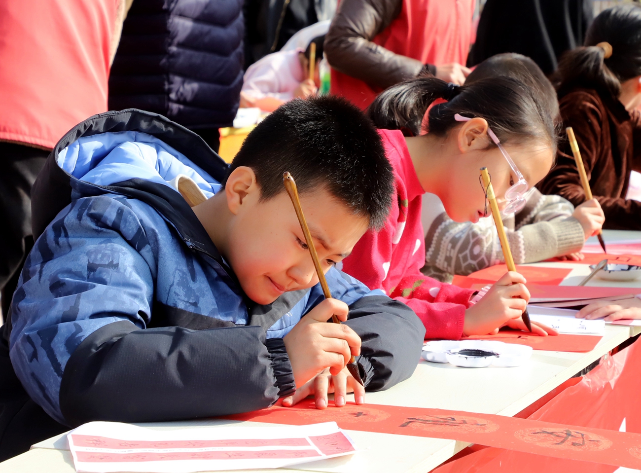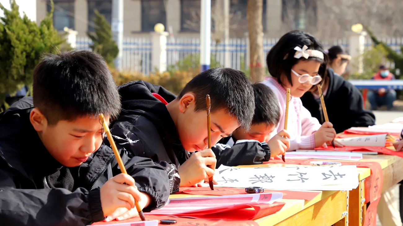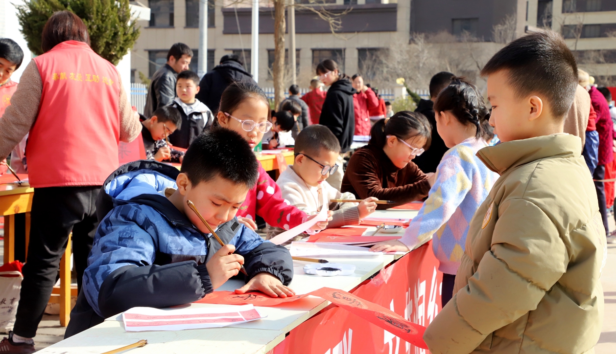 孩子们铺纸、研墨、晾联的身影,与村民们挑选春联的欢声笑语交织在一起,将冬日的村庄装点得暖意融融。此次活动不仅让村民在家门口收获了专属新春祝福,更让孩子们在实践中体悟到传统文化的魅力,实现了“以艺润心、老少同乐”的良好效果。