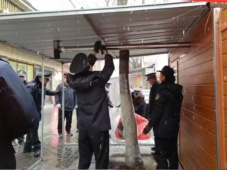 针对责令限期自行拆除违规搭建铁皮房,逾期仍未整改的小吃车,2月19日,武山县城市管理综合行政执法队三、五中队闻令而动、迎雪奋战,联合依法拆除5辆小吃车违规搭建钢结构铁皮房,着力为特色小吃车“减负”“美颜”“瘦身”,确保其轻装运营、颜值在线。此外,对在经营过程中存在垃圾乱堆乱放等行为,执法队员督促摊主现场进行清理整改,对屡教不改、严重影响市容市貌的小吃车摊主,依法依规暂扣经营工具和设施设备。这一系列整治措施有效遏制了小吃车经营管理乱象,让解放路成为城市一道满载人间烟火气的靓丽风景线。