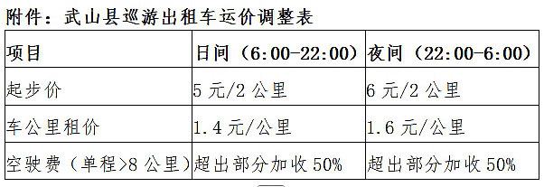 附件:武山县巡游出租车运价调整表