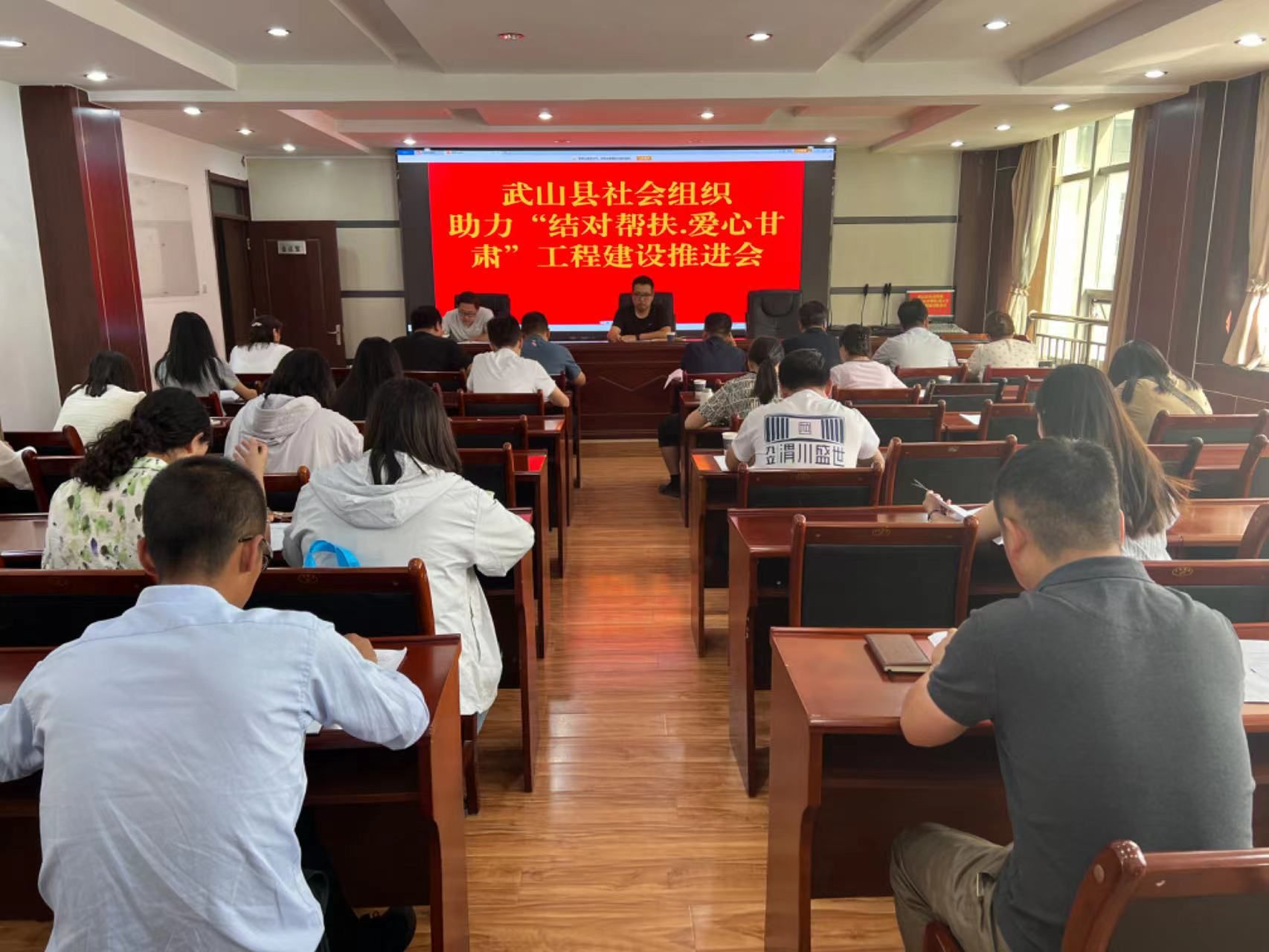 为深入贯彻落实全国打击整治非法社会组织工作会议精神,全力防范化解社会组织领域风险隐患,做好全县社会组织登记管理工作,积极动员引导全县社会组织投身“结对帮扶· 爱心甘肃”工程建设。8月31日,县民政局组织召开武山县加强社会组织登记管理工作会议和助力“结对帮扶·爱心甘肃”工程建设推进会议。县公安局、教育局、人社局、文旅局等相关业务主管单位分管领导及社会组织负责人共40余人参加会议。