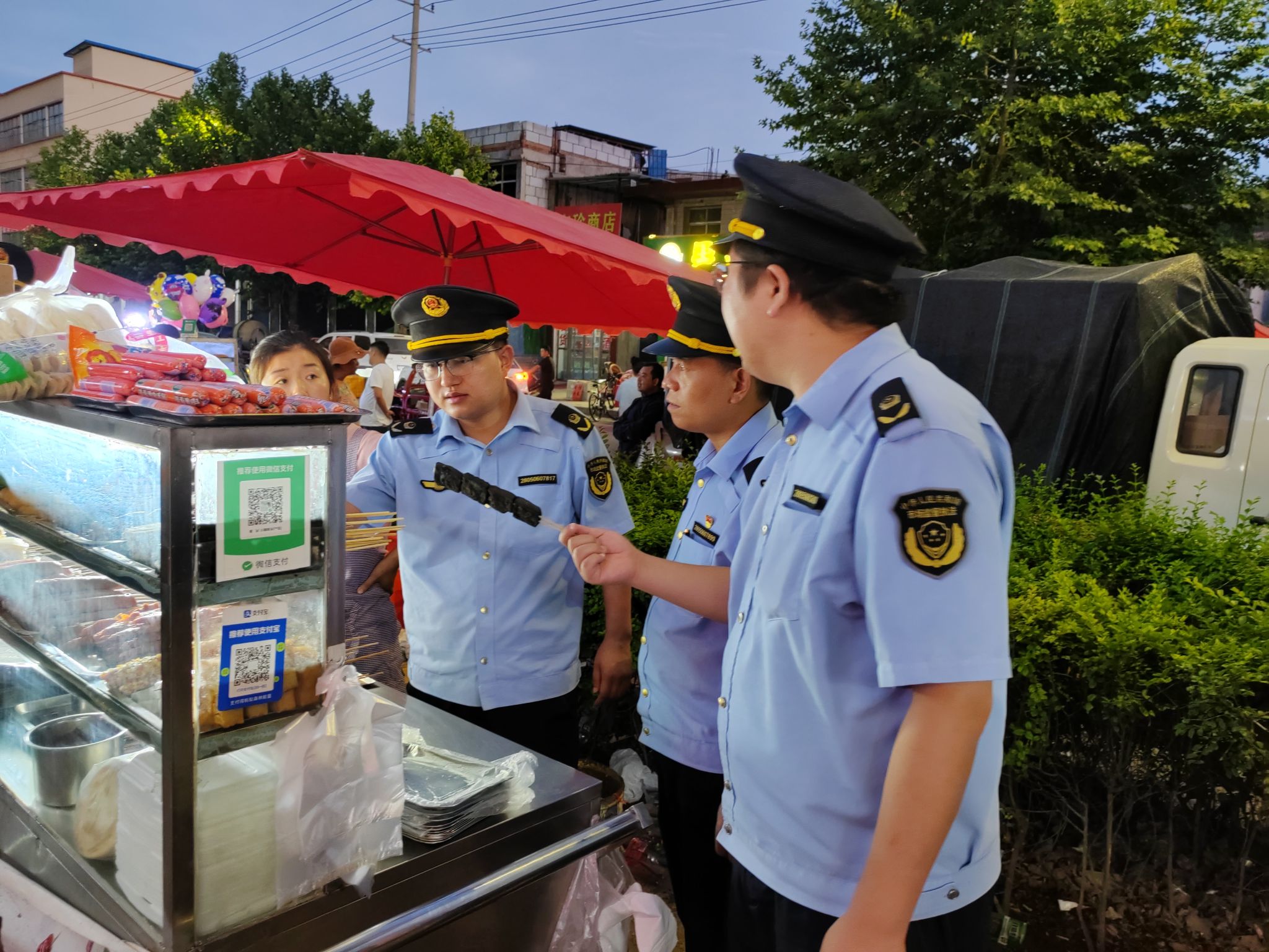 同时,执法人员督促夜市开办者要认真履行食品安全主体责任,定期开展食品安全自查工作,从严要求烧烤类摊点更换使用清洁燃料,有效缓解油烟污染,督促各食品摊主严格执行食品原料进货查验制度,杜绝使用来源不明或未经检验检疫的畜禽肉作为烧烤加工原料,规范加工操作流程,严禁加工制作腐坏、霉变的食材,要求经营户按照食品安全法律法规开展经营。