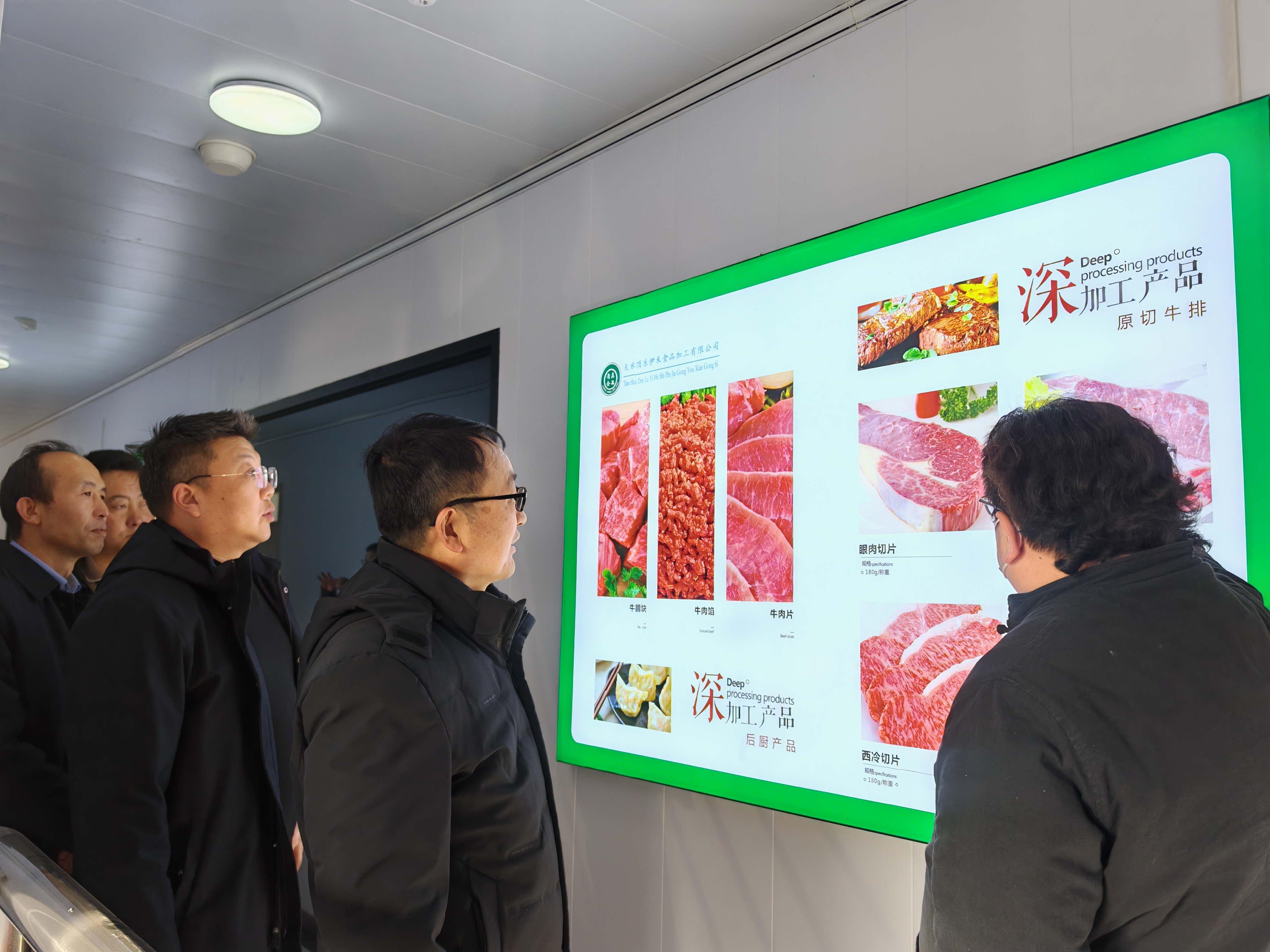 考察组一行深入张家川县红花牛标准化养殖示范基地,实地观摩了养殖棚舍、饲草料加工区、粪污处理设施等,详细了解了该基地在品种选育、标准化饲养、精细化管理、疫病防控等方面的具体做法与成效。随后,考察组前往天水顶乐伊禾食品加工有限公司肉类精深加工企业和张家川雨宁农业科技有限公司饲草料生产供应基地,现场参观了生产线和仓储物流设施,重点了解了红花牛从养殖、屠宰分割、精深加工到冷链销售的全产业链运营模式。