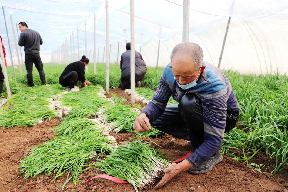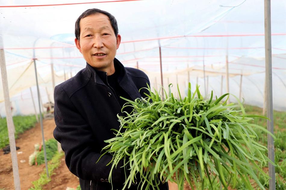 冬季的低温,使得外边的植物早已停止了生长,但在大棚内,却是一片生机勃勃的景象,鲜嫩的菠菜、红艳的水萝卜、翠绿的蒜苗在大棚的保护下,生长正憨,而最引人注目的无疑是久负盛名的“武山韭菜”。