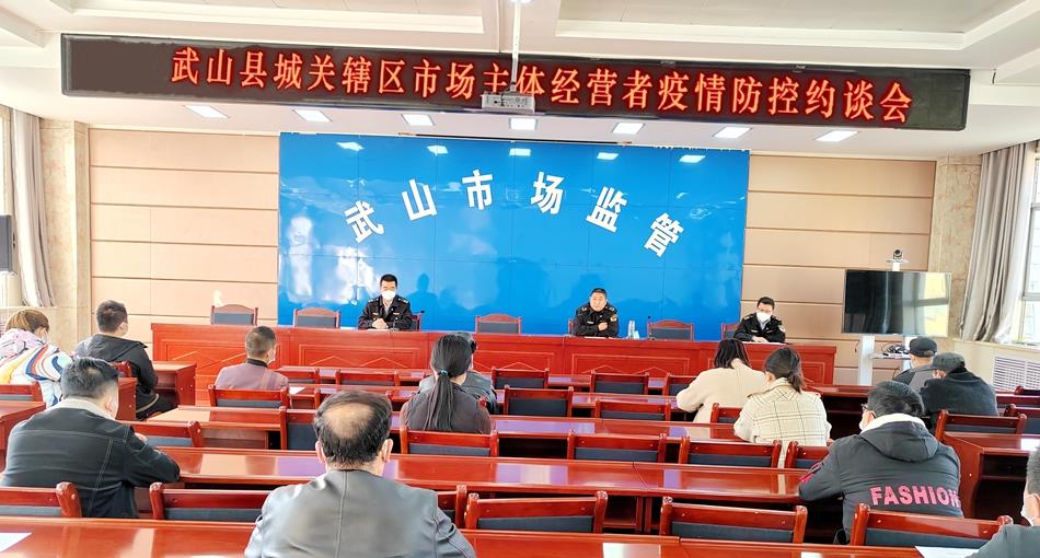 为积极贯彻落实国务院联防联控机制优化疫情防控工作的二十条措施,科学精准做好市场监管领域疫情防控工作,确保各类市场主体落细落实常态化防控措施,近日,武山县市场监督管理局组织召开了城关辖区各市场经营主体负责人疫情防控约谈会。