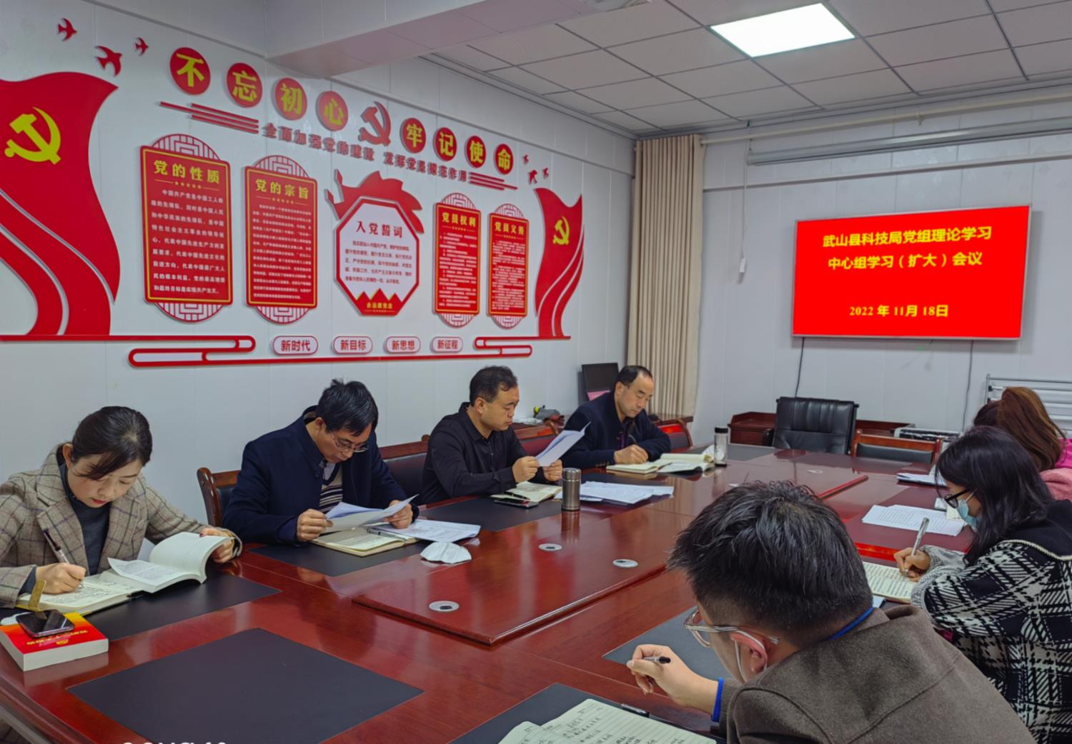 11月18日,武山县科技局召开党组理论学习中心组学习(扩大)会议,专题学习党的二十大精神,局党组书记、局长郭红海主持会议,各股室负责同志列席会议。