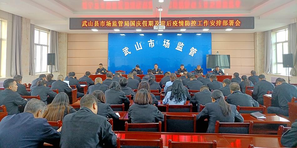 9月20日下午,武山县市场监管局召开国庆假期及前后疫情防控工作安排部署会,对市场监管领域疫情防控工作进行细致安排部署,局领导班子成员、机关全体、各乡镇监管所负责人参加会议。