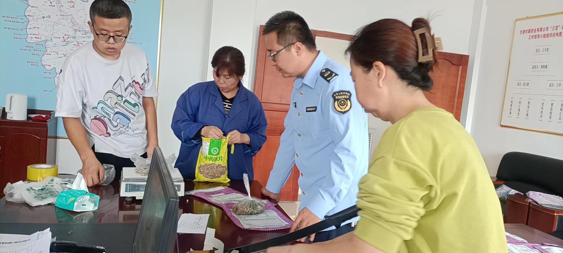 抽检过程中,执法人员重点检查药品生产企业所使用的中药材、中药饮片、中药提取物等原料是否来源合法、质量稳定,采购的中药材是否按照产地、供应商、采收时间、药材规格分别编制批号并管理,是否建立产品质量追溯体系及风险管理举措等方面情况。同时,将抽样样品信息已全部录入上传至“甘肃省药品监督管理局智慧监管平台”,并及时完成了样品封装,购样票据收集等工作。
