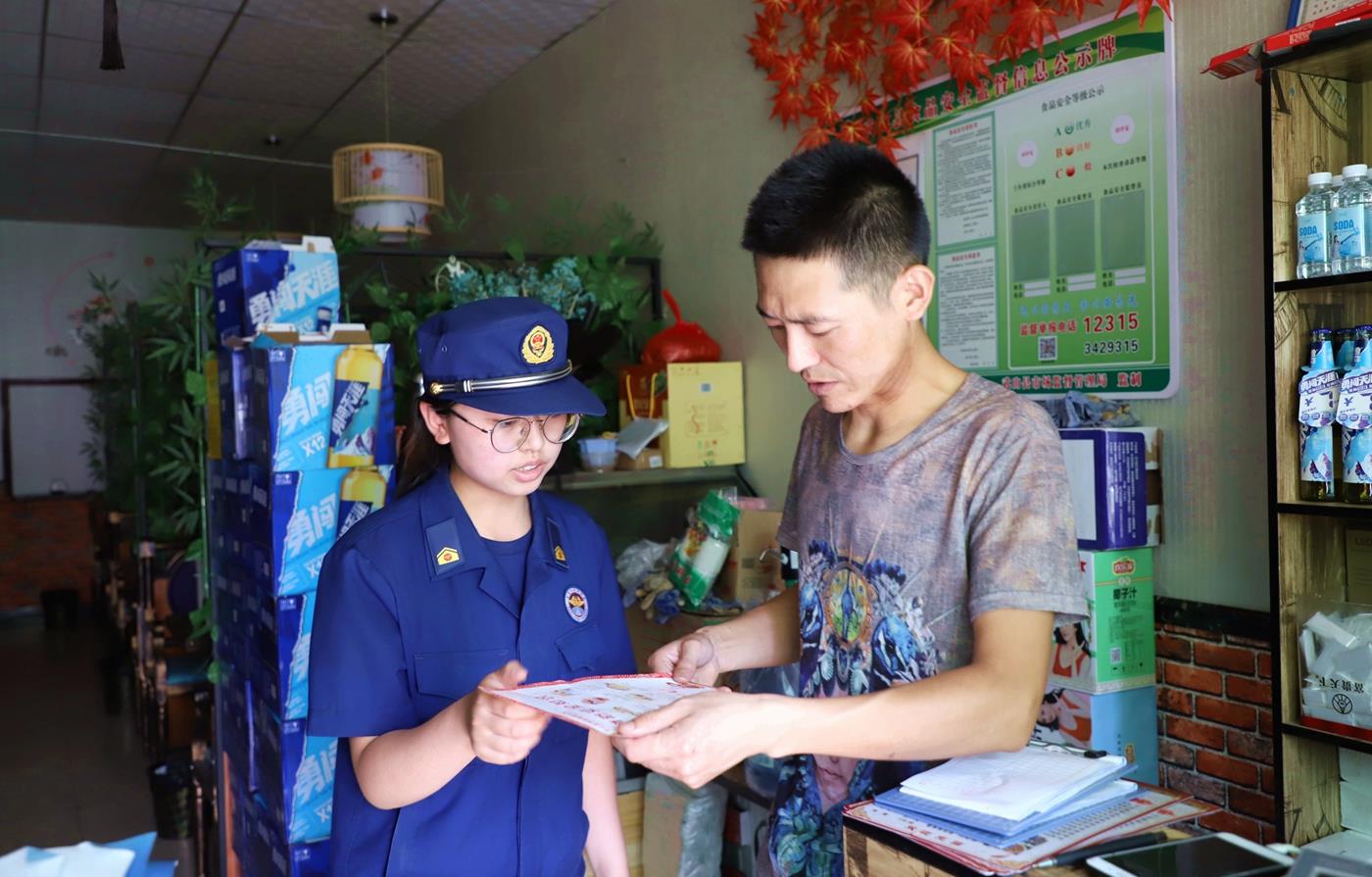“近期天气炎热,用电量大,商铺店面要定期检查电气设备安全情况,您下班关门闭店时,一定关掉电源总开关再关门,防止短路引起火灾……”,宣传活动中,大队宣传人员叮嘱各商户认真做好火灾防控工作,提醒商户营业结束后应当检查是否切断非必要的电源、气源,不堵塞和占用安全出口和消防通道,并向街边商户发放了《消防安全知识二十条》等图文并茂、内容丰富的宣传资料,并结合日常生活实际,用通俗易懂的语言向商户详细讲解了用火用电安全、排查火灾隐患、逃生自救技能及灭火器材使用方法等消防安全知识。