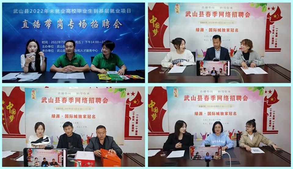 三是缓解就业结构性矛盾,拓宽市场保就业。针对不确定不稳定因素增多和疫情影响下的就业新形势,武山县人社局多措并举,在全市县区率先开展了“直播带岗,职等你来”“2022年未就业普通高校毕业生到基层就业项目直播带岗专场招聘会”,提供管理、文秘、会计、销售、餐饮、畜牧兽医等各类岗位530多个,吸引高校毕业生、退役军人、农民工、城镇失业人员、残疾人等各类求职者2.18万人次在线求职观看。并联合县内各自媒体,开展了“春风行动”“雨露计划+”“新疆尉犁县辅警招录”“民营企业 妇女 残疾人就业招聘月”“就业援助暖心行动”等线上线下招聘会,组建了招聘求职群,定期不定期发布省市县各类用工信息,并及时将各招聘信息转发各乡镇、各求职人群。截至目前,举办招聘会94场(次),直播带岗招聘210人到县内外企业就业。其中:线下3场,发布网络招聘信息91期,转发国内各类高校毕业生招聘信息672期,提供各类就业岗位2.1万个,有力推动了全县稳就业、保民生工作。