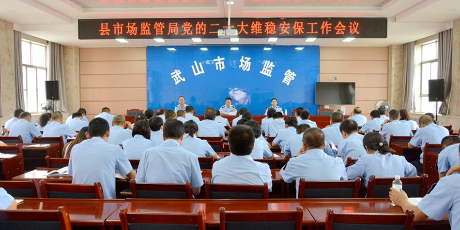 8月19日下午,武山县市场监管局召开党的二十大维稳安保工作会议,传达学习了省市县相关会议精神,对市场监管领域维稳安保工作进行了安排部署,各领导班子成员、机关各股室、各乡镇监管所负责人参加会议。