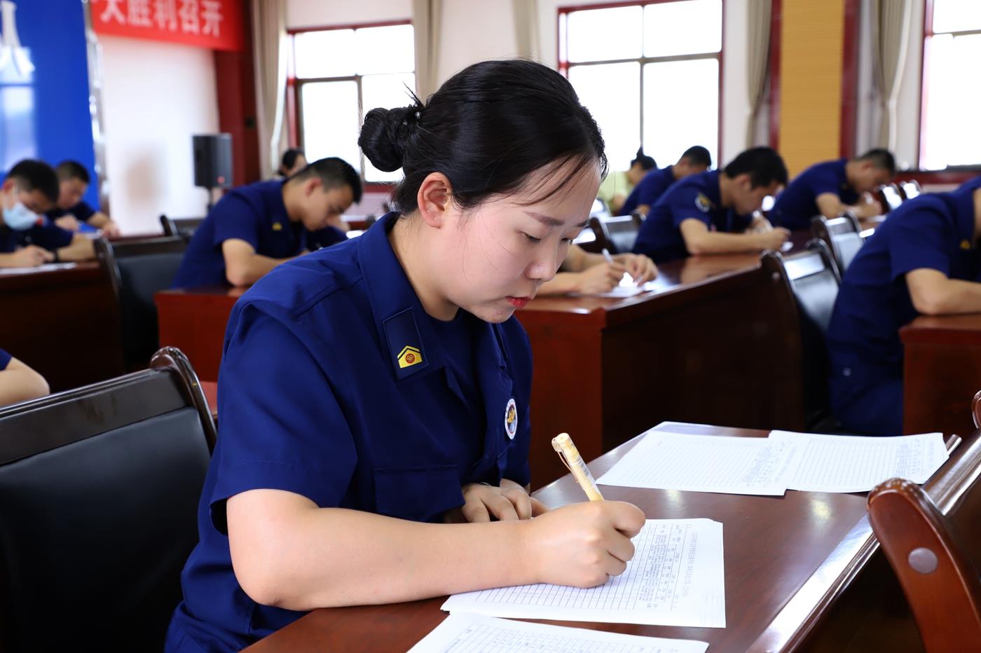 考核主要包括晋升考试、业绩核查、任期内年度考核成绩、民主测评四大环节,体能考核项目依照人员实际,按照专职消防队员3000米跑、单杠引体向上、双杠曲臂升,消防文员3000米跑、俯卧撑、屈腿仰卧起坐、1500米跑、平板支撑、跳绳的划分进行考核,全面检验每名预选晋升专职消防人员的整体综合素质水平。考核期间,考核组坚持“依法办事、公开公正,严格标准、择优选取,先训后选、选用一致”的原则,全体参考人员严格遵守考场纪律,态度端正,积极应考,以良好的纪律作风、饱满的精神状态积极投入到考核中,充分发挥了良好的业务水平。