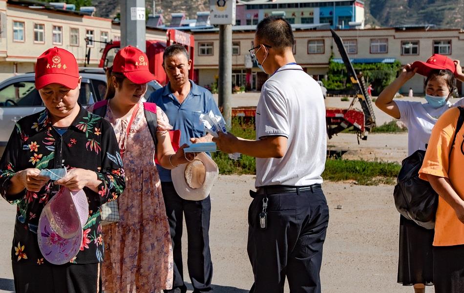 武山县劳务输转服务中心相关负责人,滩歌镇分管领导到滩歌汽车站欢送外出务工人员,看望慰问大家,为他们发放了口罩、安全小红帽、温馨提示卡、方便面、矿泉水等防疫和生活必需品,带去了党和政府的关怀与温暖。
