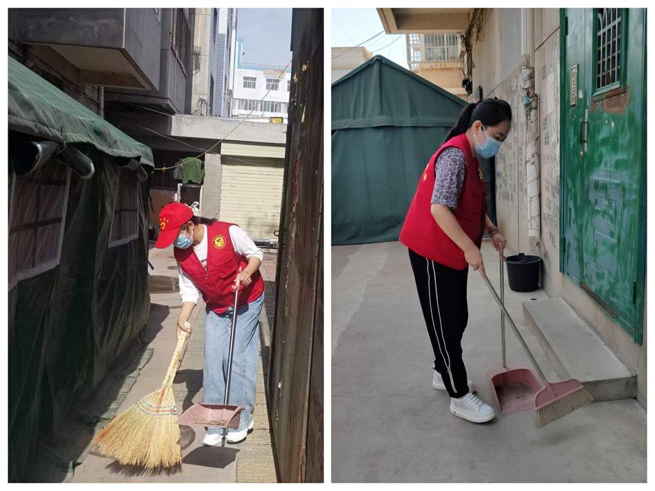 县教体局家属院内,值班值守的志愿者在做好疫情防控值守的同时,对小区院内、楼道内、值班帐篷内外进行彻底打扫,确保不留任何死角。同时,对小区居民进行最新疫情防控要求、环境卫生整治教育和宣传,积极倡导居民从我做起,从身边小事做起,做到小区内清新整洁、干净卫生。