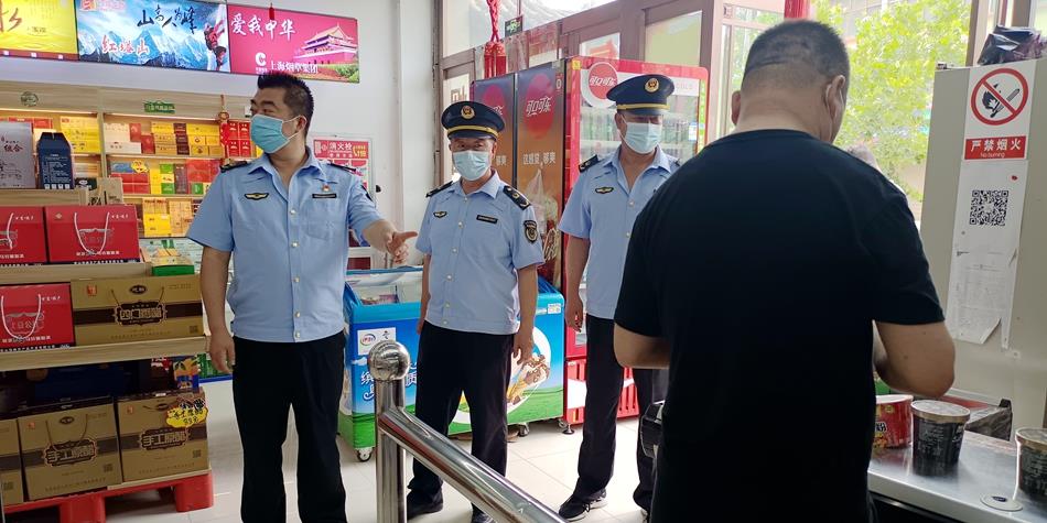 二是强化店面管控力度,落实“一扫三查”措施。持续深入开展农贸市场、商超、餐饮单位、五小店面等重点场所疫情防控监管专项检查,督促经营者规范有序落实疫情防控主体责任,督促各类经营单位严格落实佩戴口罩、验码扫码测温、通风消毒等常态化防控措施,督促米面油经营户、餐饮单位坚持使用“陇上食安”电子追溯系统,规范应用“电子一票通”,同时对相关从业人员核酸检测情况进行抽查,全力保障人民群众身体健康。截至目前,已督促各类重点行业、场所、人群完成核酸检测3335人份,检测结果均为阴性。对检查发现的部分超市人员密集问题责令经营者当场进行疏导,确保安全经营。