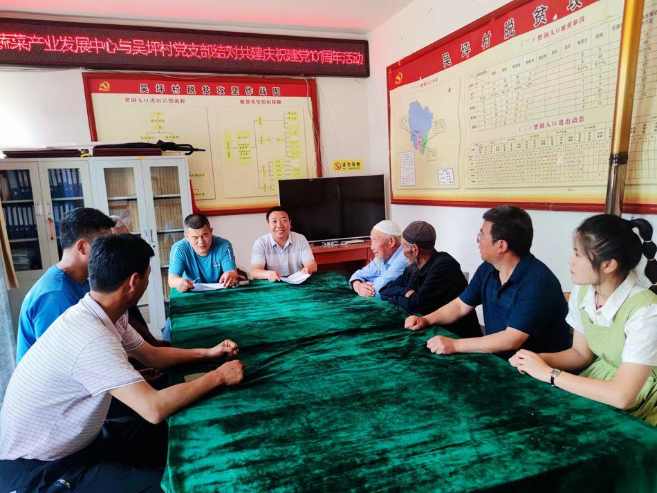 同时,县蔬菜产业发展中心与党员代表进行了座谈,蔬菜研究所所长赵昱亮同志为帮扶村党员干部宣讲了省第十四次党代会精神,并就吴坪村产业发展进行了探讨和谋划。
