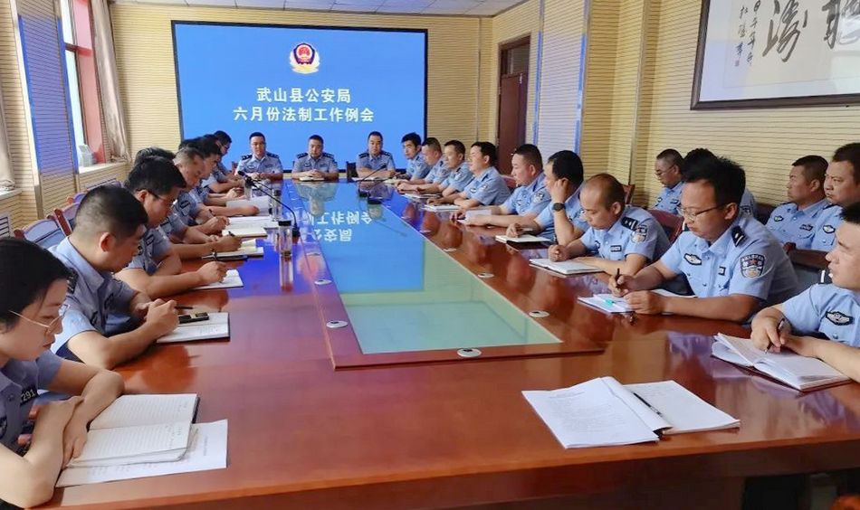 6月29日下午,武山县公安局召开法制工作会议,认真学习上级公安机关有关文件精神,总结上半年法制工作,研究梳理执法办案中存在的问题,安排部署近期法制重点工作。局党委委员、副局长蒲宏儒出席会议并讲话。武山县公安局全体法制监督员、法制大队民警及部分办案所队民警参加会议。
