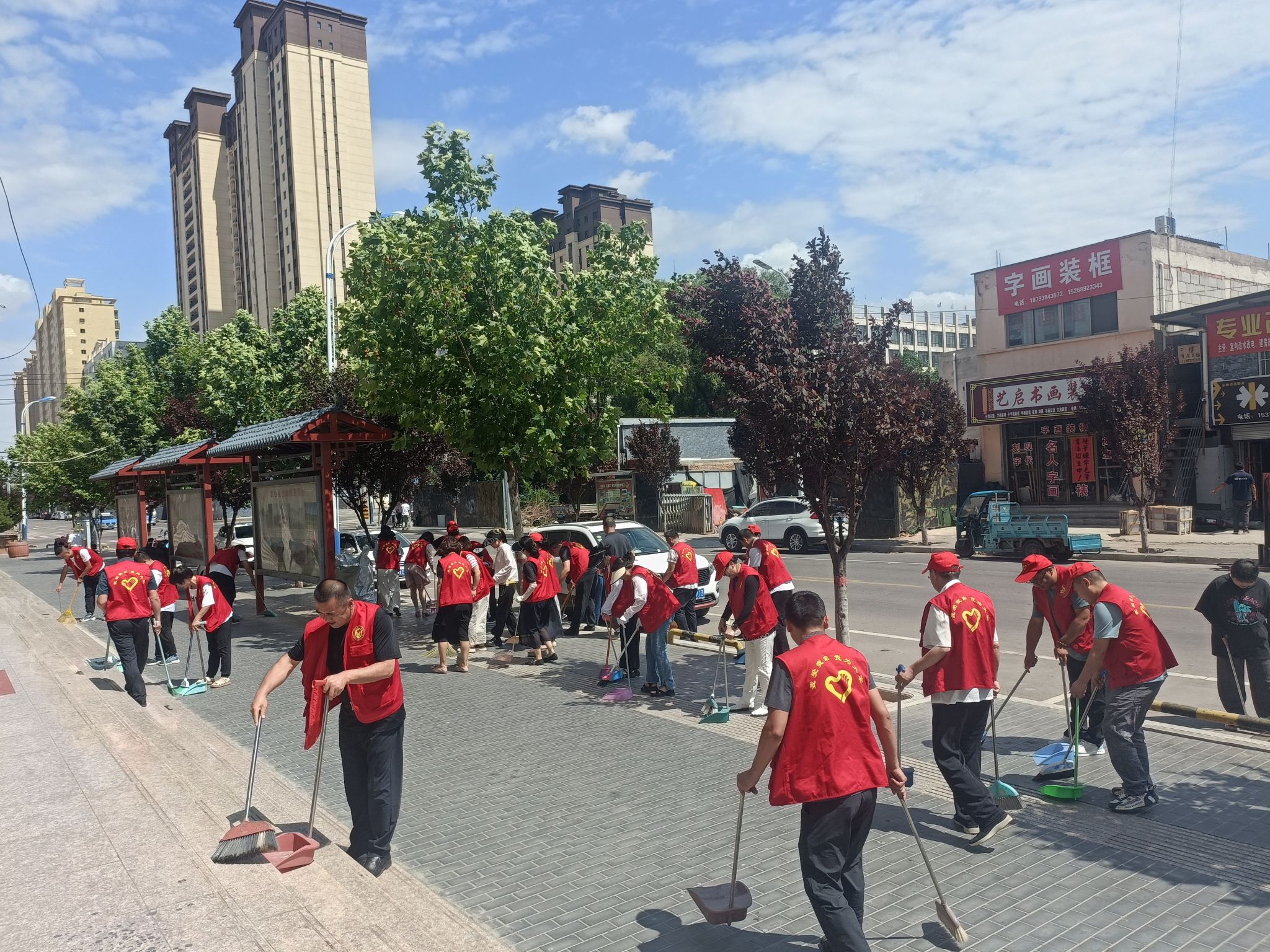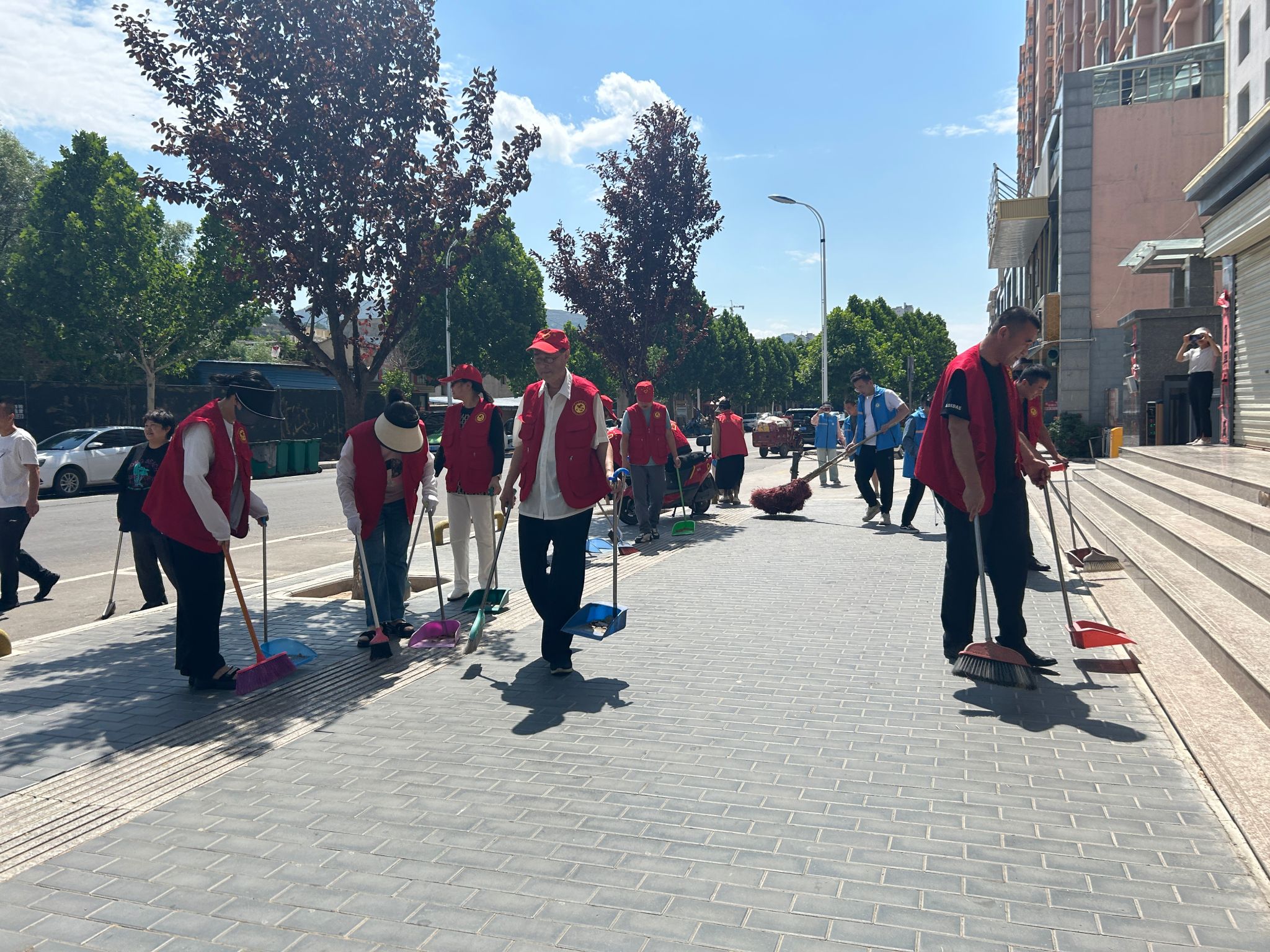 在兴新路,与阳光社区联合行动,开展了“一爱一为”志愿服务活动,对公路两旁生活垃圾进行了集中清理。