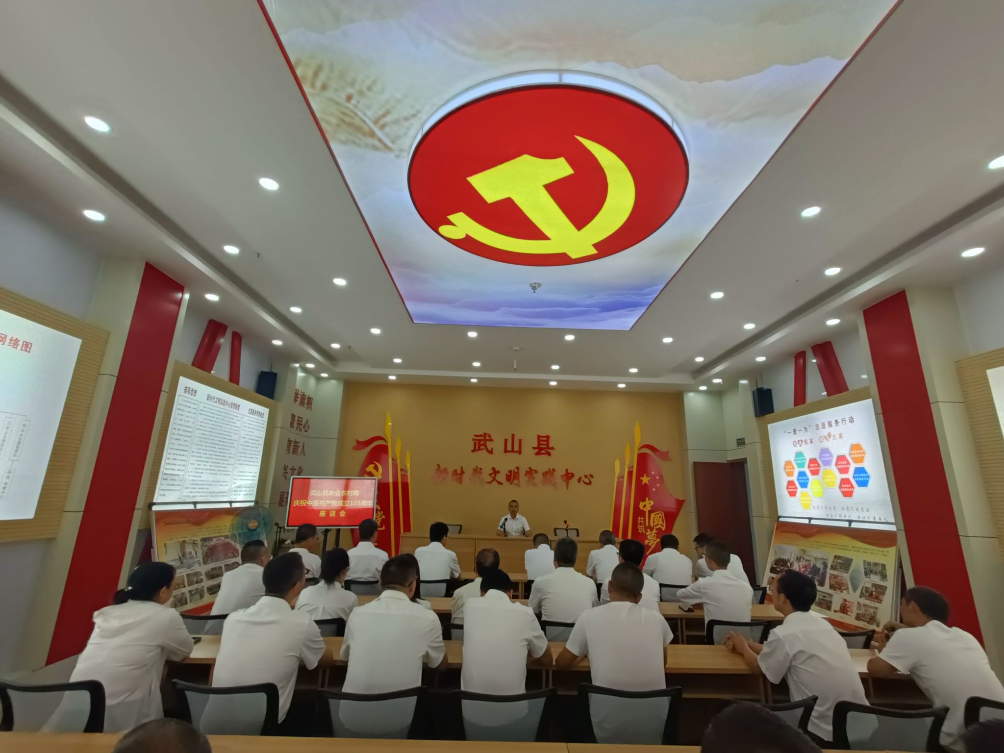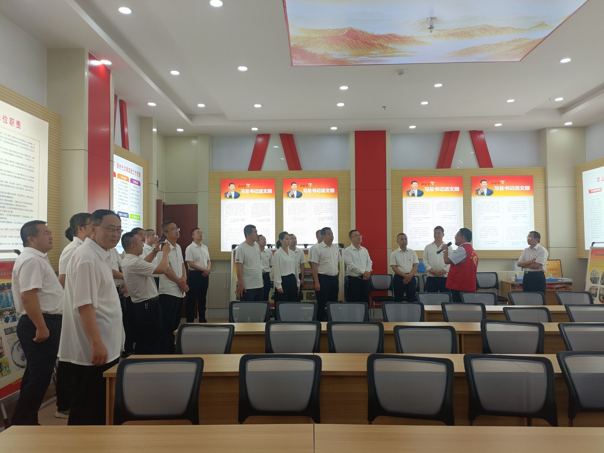在武山县新时代文明实践中心,县委宣传部副部长康想林介绍了武山县新时代文明实践中心成立以来的工作情况,并召开了座谈会。通过参观座谈,大家了解到我县新时代文明实践活动与乡村振兴、社会治理、城乡建设、产业发展、文明创建等重点工作紧密结合,助力了县域经济高质量发展,充分感受到新时代文明实践活动取得的成效成绩。