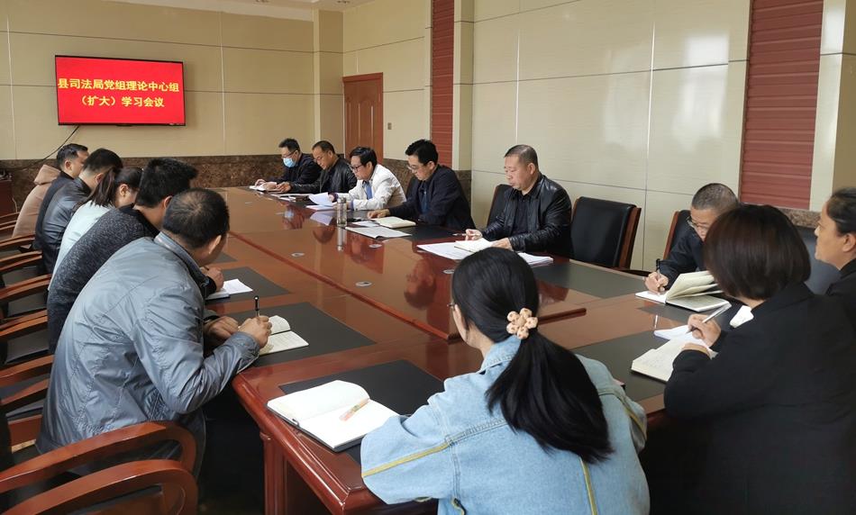 10月19日上午,县司法局党组书记、局长张飞豹主持召开党组理论学习中心组(扩大)会议,传达学习《中国共产党第十九届中央委员会第七次全体会议公报》,习近平代表第十九届中央委员会向中国共产党第二十次全国代表大会所作的报告和参加党的二十大广西代表团讨论时的重要讲话精神,《人民日报》社论《奋力开创中国特色社会主义新局面》和法治日报文章《全面推进国家各方面工作法治化 盘点党的二十大报告法治元素》,《习近平谈治国理政》第四卷部分章节。