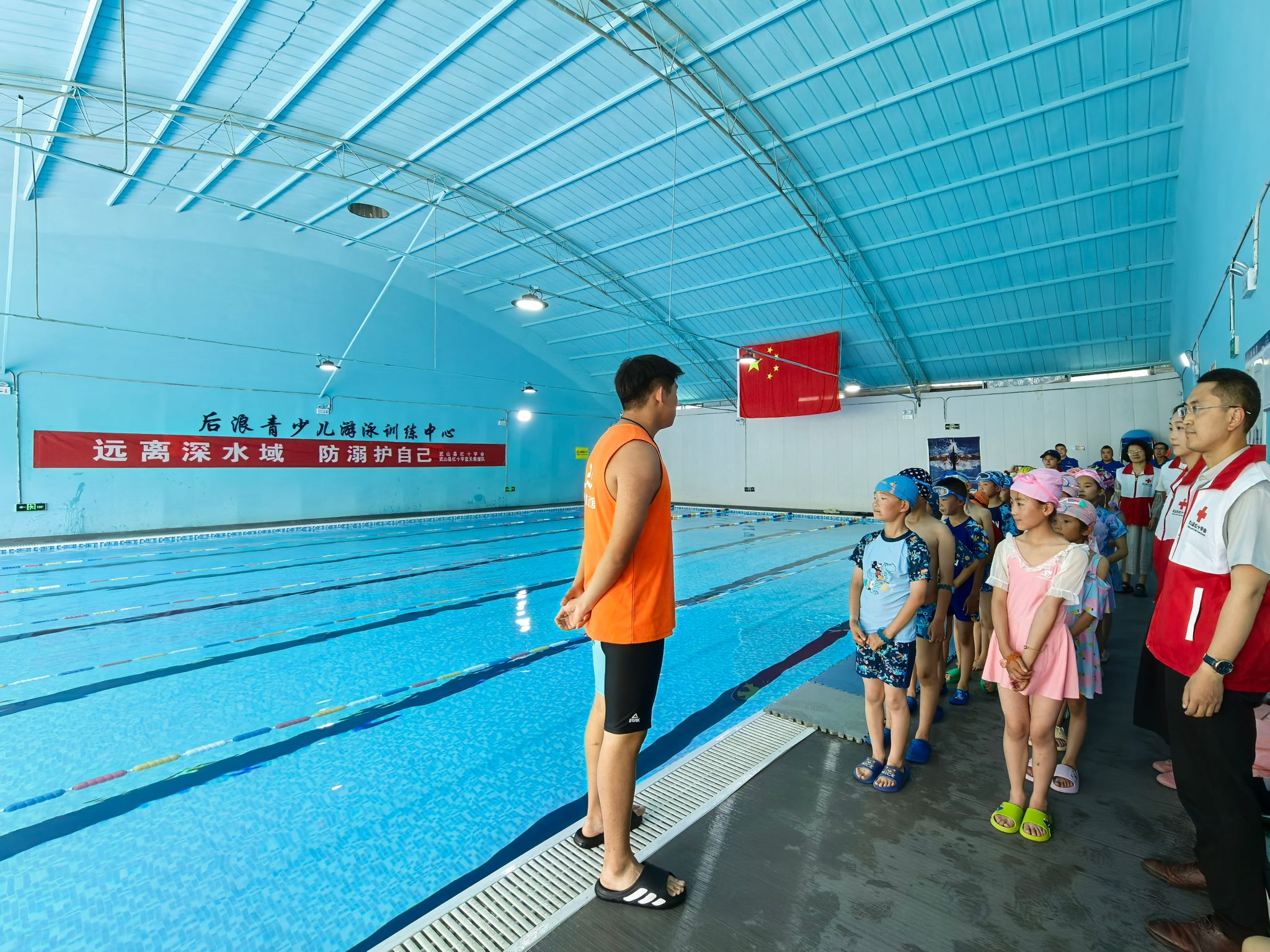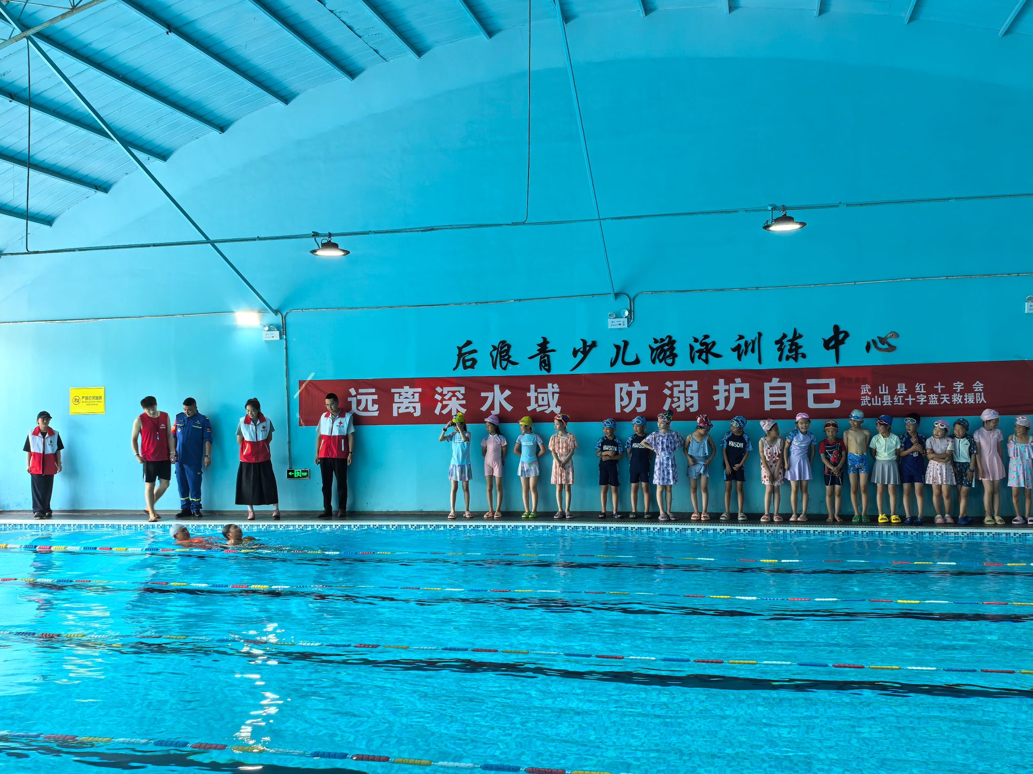随着气温逐渐升高,溺水事故进入高发期。为切实增强小学生的防溺水安全意识,提升其自救互救能力,6月5日,武山县红十字会携手县红十字蓝天救援队走进宁远游泳馆,开展了一场别开生面的小学生防溺水安全教育实训活动,为孩子们送上了一堂生动实用的生命安全教育课。此次活动,武山县城关镇第四小学组织30名学生参加,为校园安全教育提供实践经验。