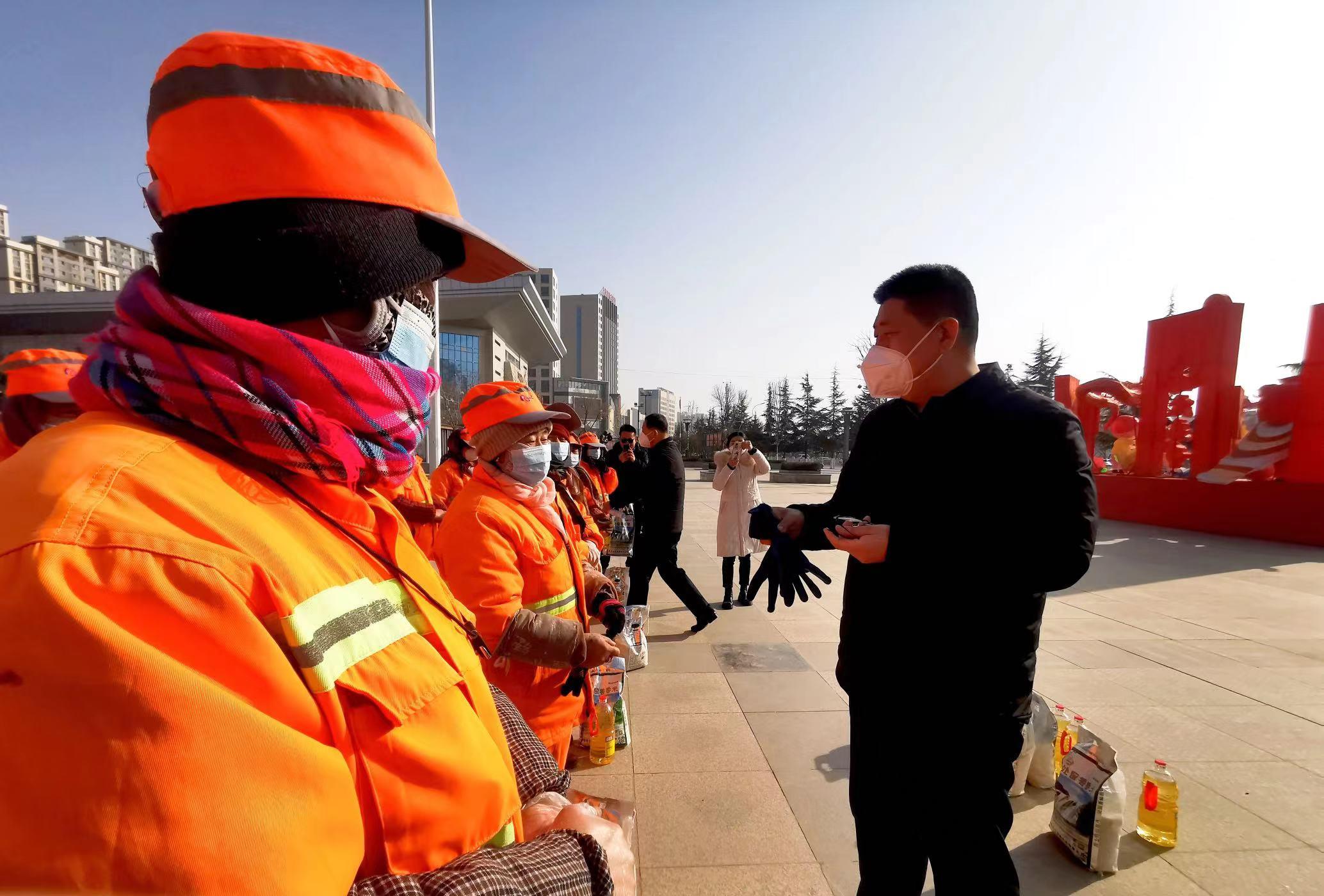 在新春佳节即将来临之际,1月19日,县委常委、副县长赵百祥,县委常委、城关镇党委书记王想成看望慰问一线环卫工人,代表县委、县政府向他们表示亲切慰问,并送上节日慰问品和新春的祝福,并通过他们向全县广大环卫工作者及其家属致以节日的问候。