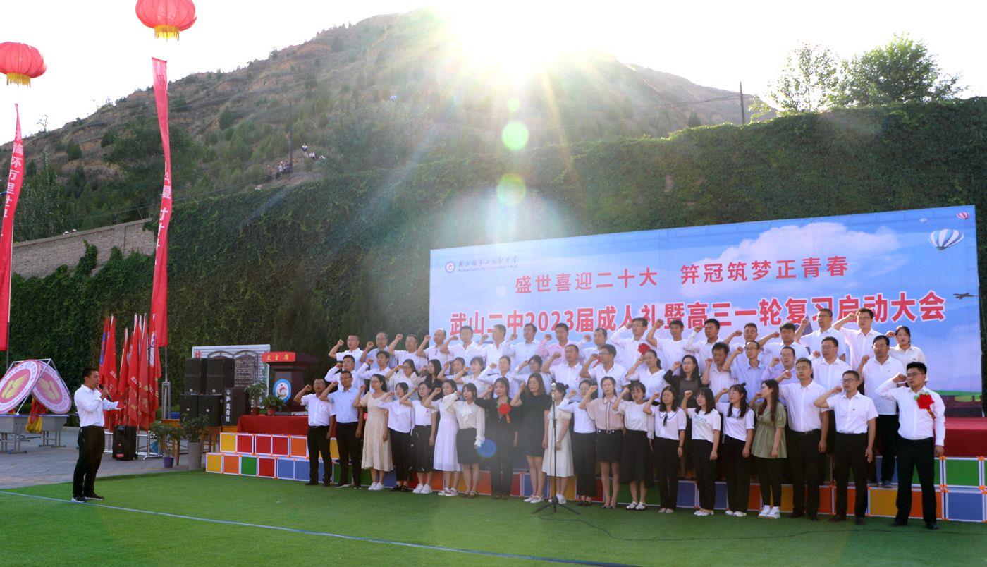 武山县融媒体中心7月7日讯(记者 康正东 董世雄)秉承成才先成人,成人先做人的教育理念,7月7日,武山县第二高级中学举行“盛世喜迎二十大 笄冠筑梦正青春”2023届成人礼,1000余名高二师生及学生家长一起见证学子们走向成人的难忘时刻。
