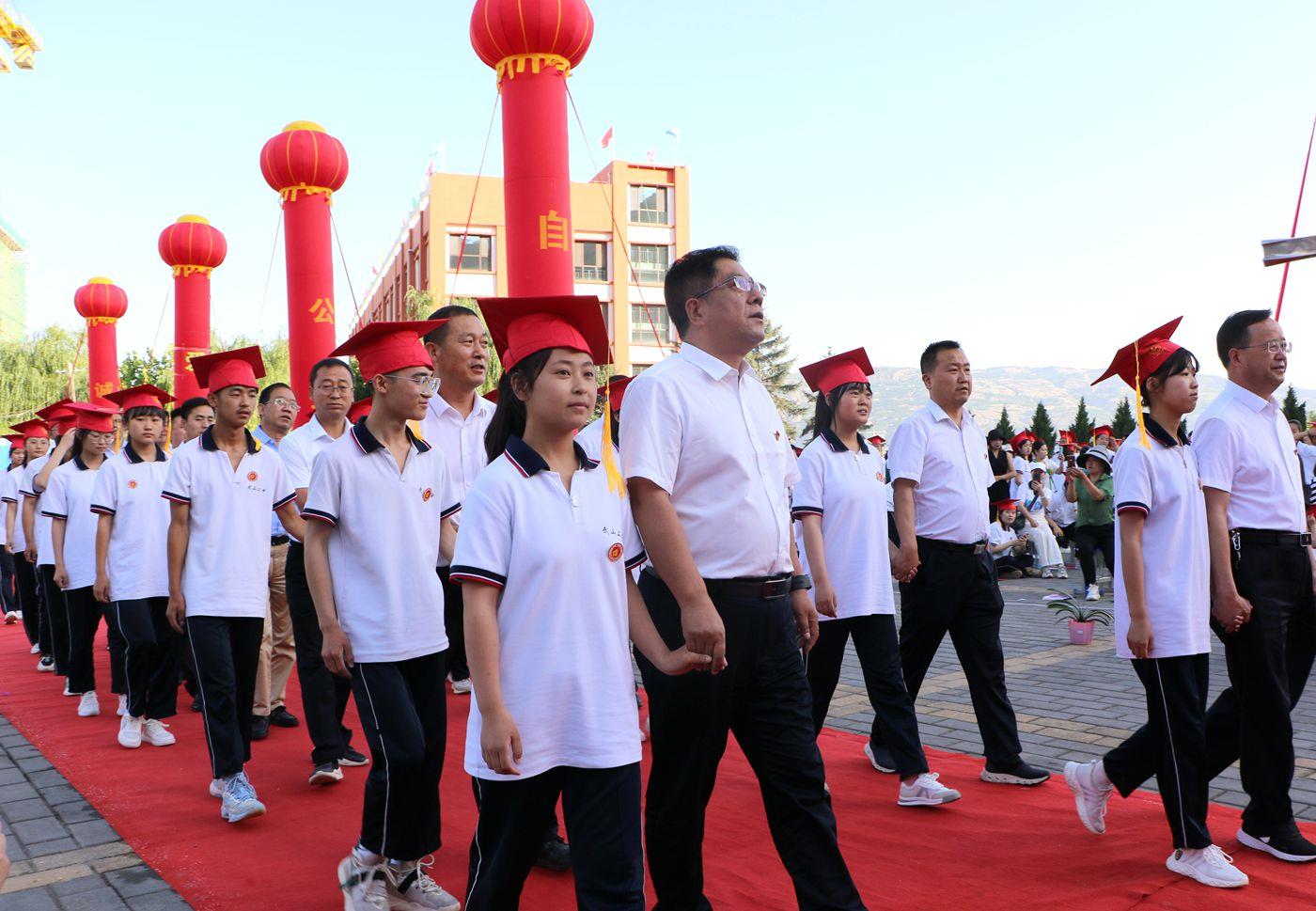 县教育局和学校领导分别寄语学生要心怀感恩、无愧家国,敢于担当、勇挑责任,志存高远、勇于逐梦,以青春的汗水和奋斗的誓言,勇做新时代的追梦人。