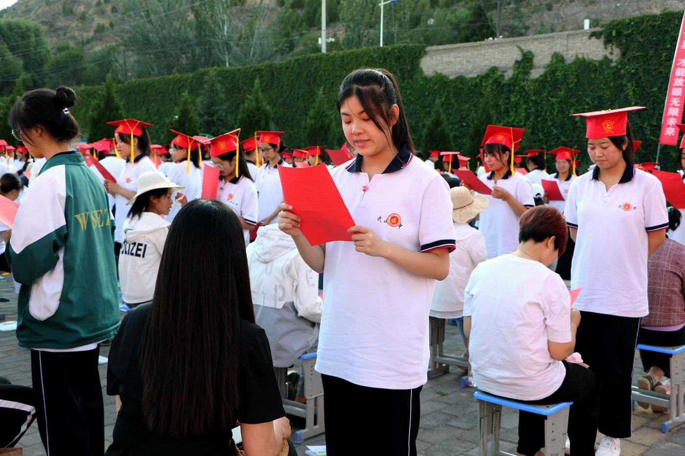 一封感恩信,将十八年来的感恩化作一个个字符,给父母深深地鞠一躬,感谢他们十八年倾心培育与无私爱护,一句“爸爸、妈妈,我爱你”,让学生们明白成人才能成才。