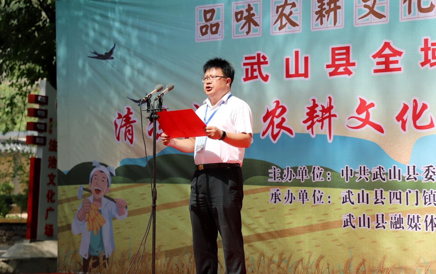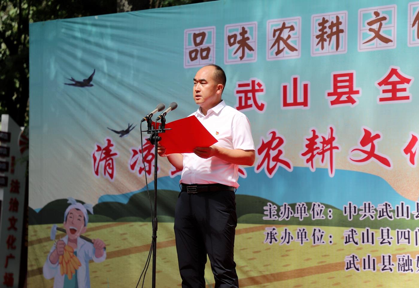凌鹏亮讲话指出,武山有着丰富多彩的传统农业的生产方式、生产工具和农民的生活方式、生活用品等,但随着时代的快速发展,农耕生产方式正发生着革命性变革,传统农耕文化也渐行渐远。通过今天的集中展示,能够帮助唤起大家对农耕文化的深深思念,号召动员大家行动起来,为抢救性挖掘、研究和存留武山传统农耕文化做些工作。同时,把传承农耕文明与发展现代农业有机融合起来,持续深化农业供给侧结构性改革,加快农业产业结构调整,实现由传统农业向现代农业的历史转变。希望以这次农耕文化体验游活动为契机,进一步传承和弘扬农耕文明,真正把武山丰富的乡村旅游资源变成加快发展的优势,促进农业增效、农民增收和农村增绿。也希望借各方宾朋会聚“醋香四门”的东风,更好地把武山农耕文化推介出去,促进旅游业高质量发展,为推动乡村全面振兴和全县经济社会高质量发展作出新的更大贡献。