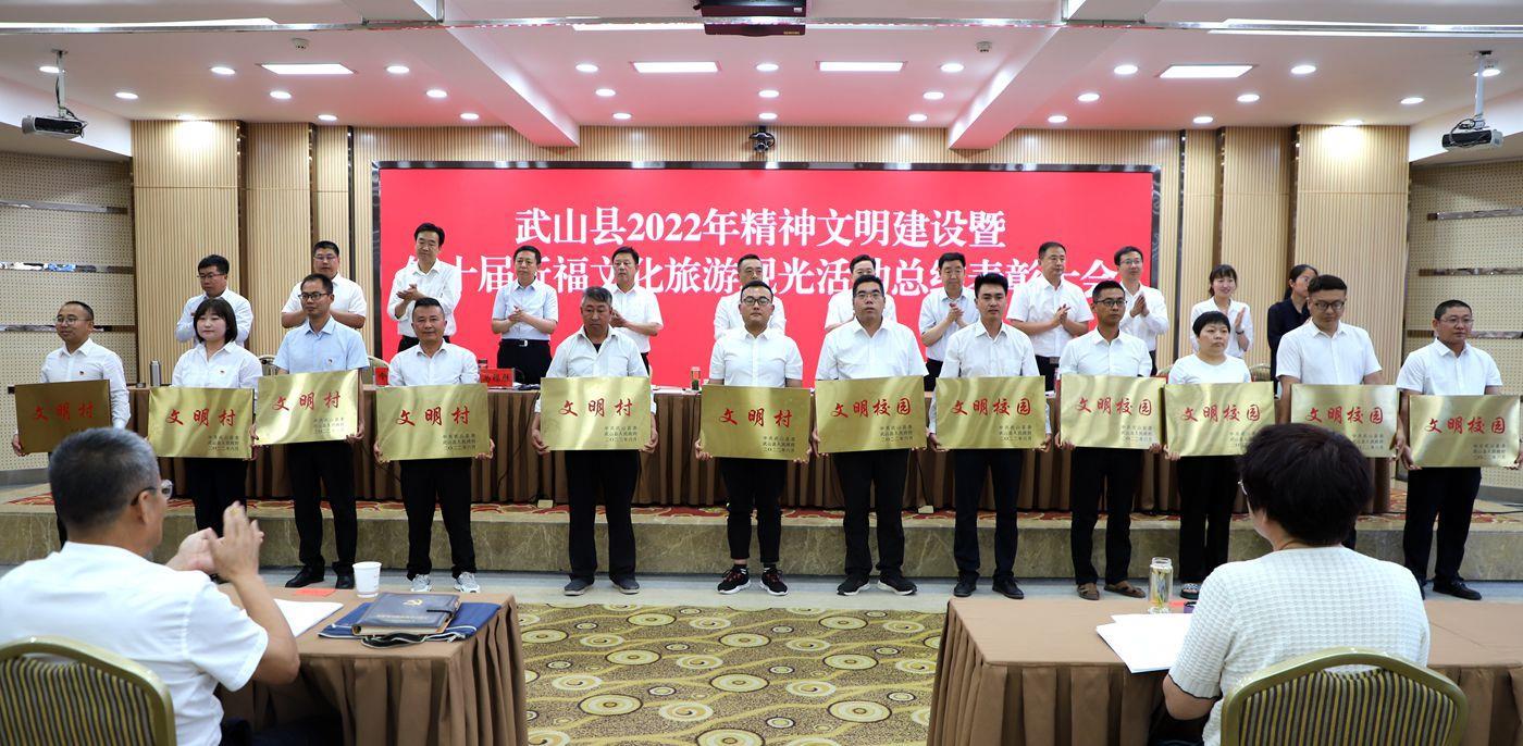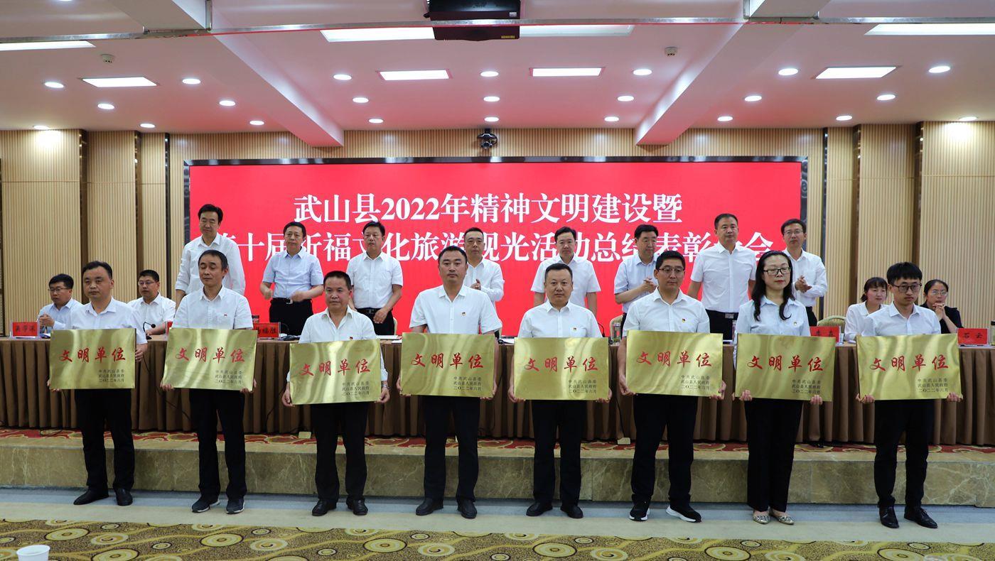 武山县融媒体中心讯(记者 蒲爱民 管秋勇)6月30日,武山县召开2022年精神文明建设暨第十届祈福文化旅游观光活动总结表彰大会,对获得“县级文明单位”荣誉称号的县科技局等8个单位,获得“县级文明村”荣誉称号的城关镇君山村等35个行政村,获得“县级文明社区”荣誉称号的城关镇南关社区等2个社区,获得“第四届县级文明校园”荣誉称号城关镇康瓦坪小学等33所学校进行了表彰。