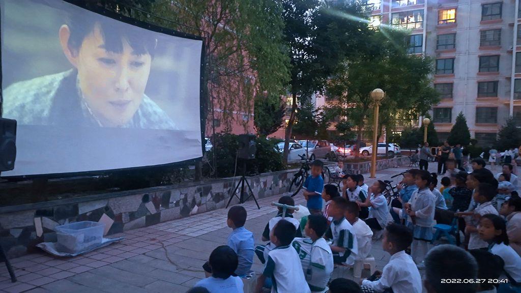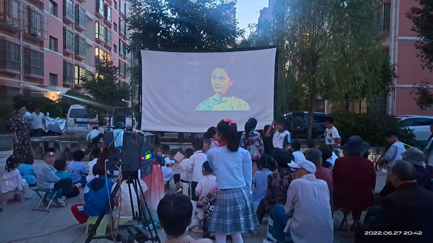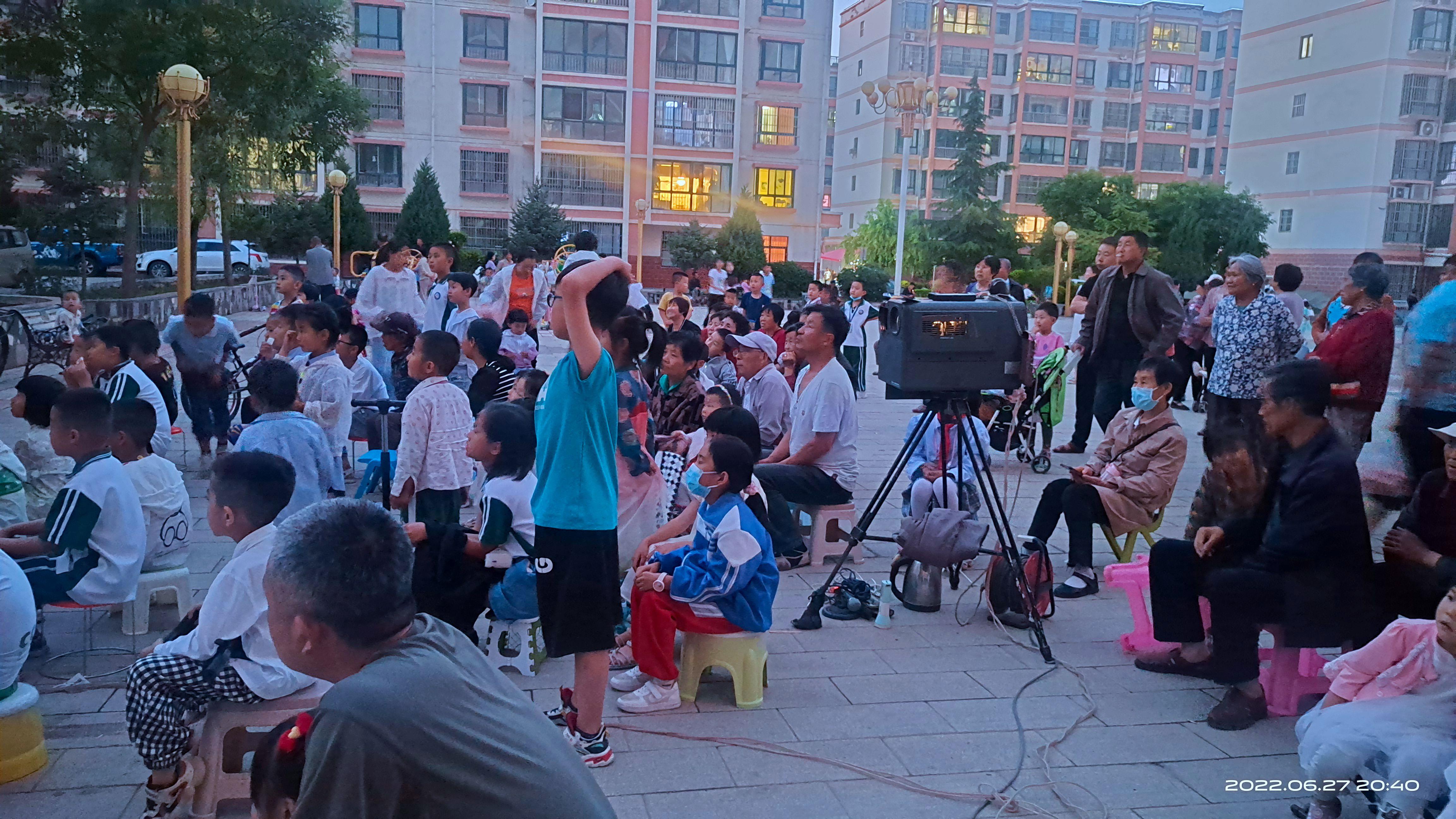 武山县融媒体中心6月28日讯(记者 闫君兰)6月27日晚,玺华苑小区广场聚集着许多前来观影的群众,武山县城关镇公益电影放映员正在开展“文化进小区”公益电影放映活动,为居民免费放映露天电影《豁出去了》,通过文化惠民的方式为小区居民送去精神食粮。
