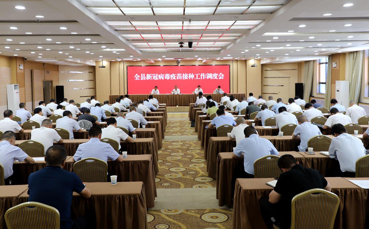 县委书记、县疫情联防联控领导小组组长王新强出席并讲话,县委副书记、县长、县疫情联防联控领导小组组长王志成主持会议,县委常委、宣传部部长、县疫情联防联控领导小组副组长胡丽霞通报全县新冠病毒疫苗接种工作情况,县领导孙德银、李康宁、令军强、李森、赵百祥、吴学深、石云、张志林、凌鹏亮、吴健明出席会议,县疫情联防联控领导小组成员单位、部分医疗卫生机构负责人参加会议。