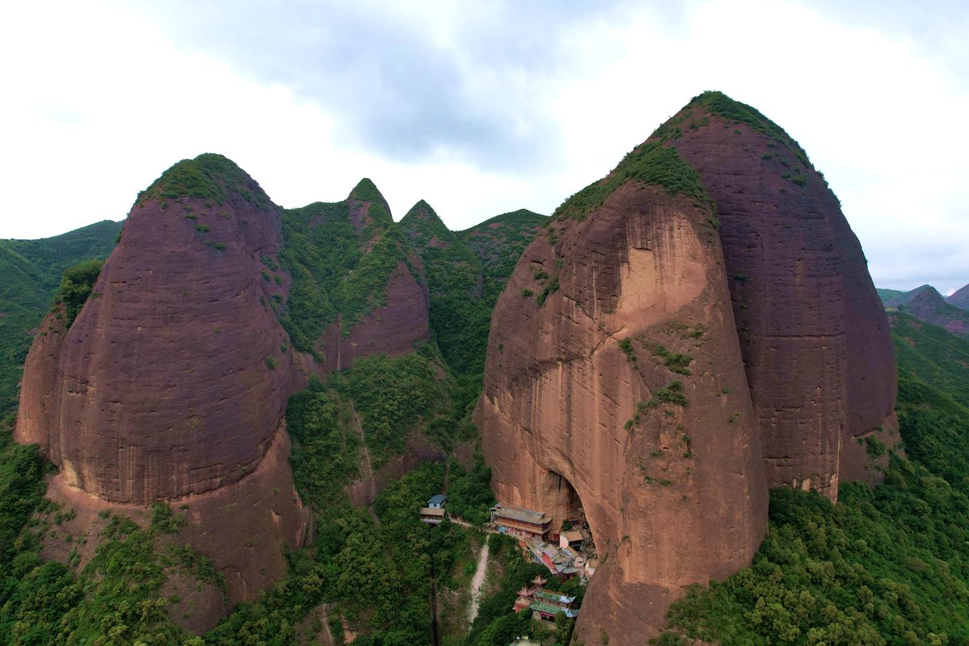 观景台上去是天书洞,要到达天书洞须攀爬挺立八十度的61个石质台阶,走一段距离地面60米的木质栈道,非常险要,因传说洞中藏有天书而得名。在洞内塑有五尊明代的菩萨像,造像具有明显的时代特征。(照片/韦佳 何慧 赵超 康正东 王继明 郭永强)