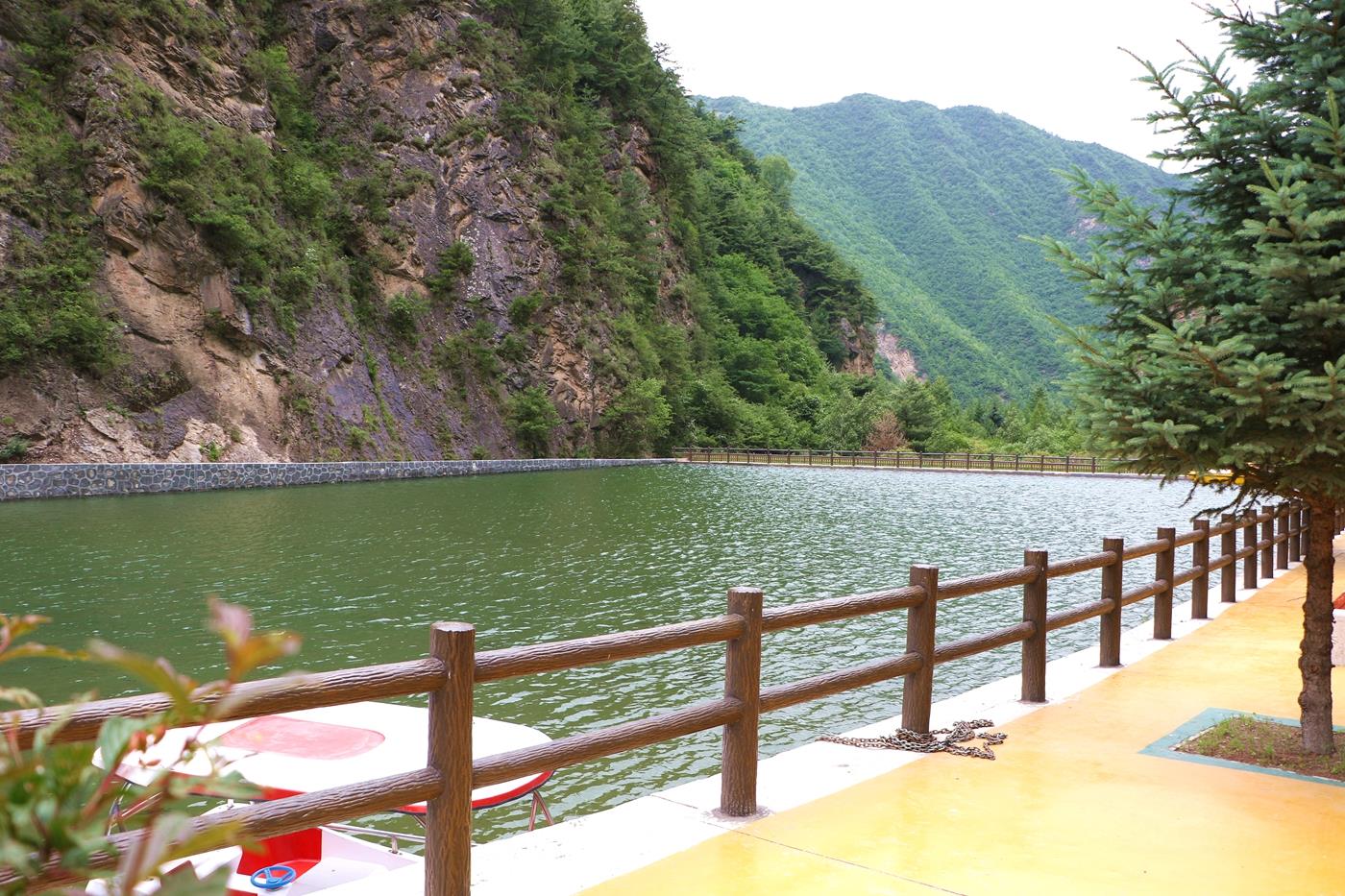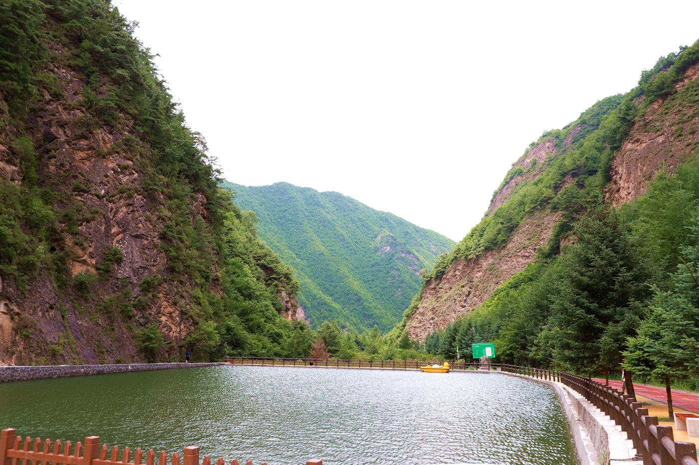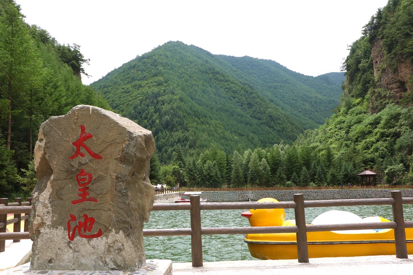 太皇池是一座人工湖,周边的树木倒映在湖中,湖波荡漾,波光粼粼,湖面上的景物随波抖动,湖泊中的小船到处游弋。离太皇池不远有栈道和天梯相连,直通山顶,虽然又高又险,但能看到山顶的最佳风景。其中,“瘦驴脊梁”堪称一绝,“瘦驴脊梁”长约十余米,宽才不足一尺,两壁有千仞的石径,两侧便是深渊,东西横跨在两个险峻峰峦之间,远看真好似瘦驴的脊梁。