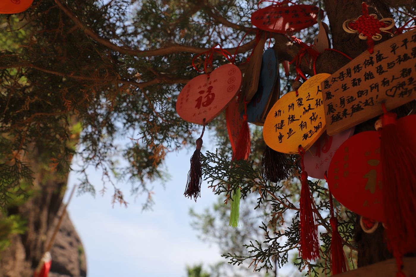 观景台上去是天书洞,要到达天书洞须攀爬挺立八十度的61个石质台阶,走一段距离地面60米的木质栈道,非常险要,因传说洞中藏有天书而得名。在洞内塑有五尊明代的菩萨像,造像具有明显的时代特征。