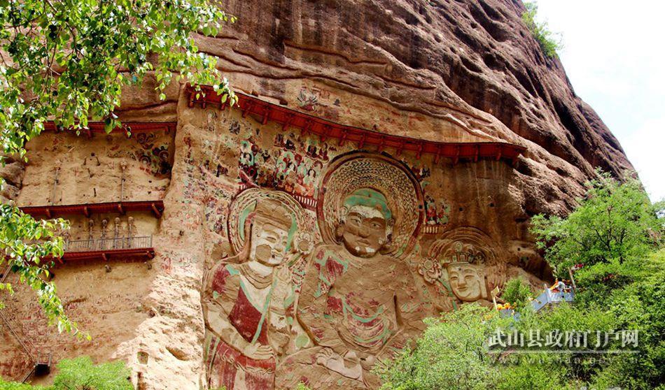 在世界众多的石窟遗存中,武山水帘洞石窟群是中国开凿时间最早的石窟之一。它地处县城东北方向榆盘镇鲁班峡,始建于十六国时期的后秦时期,后经北魏、北周、隋、唐、宋、元、明、清历代增建和修缮,曾经达到了“七寺五台”的规模,现存留显圣池、拉稍寺、水帘洞和千佛洞四处石窟单元。