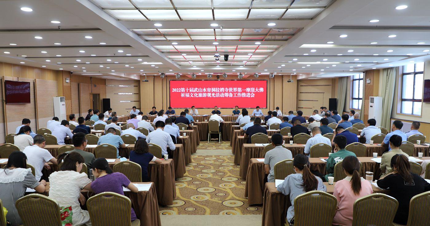 王新强在讲话中强调,举办2022第十届武山水帘洞拉梢寺世界第一摩崖大佛祈福文化旅游观光活动是对全县经济社会发展的全面展示,全县各级各部门要高度重视,全力以赴做好各项筹备工作,确保活动如期顺利举行。要明确职责,严格按照各自分工,有力有序抓好各项筹备工作。要细化方案,进一步完善方案,将工作任务分解到人,确保各项工作有人抓、有人管。要沟通配合,树牢全局观念,加强衔接配合,形成工作合力。要紧盯细节,强化工作预判,细化工作措施,切实提高工作的精细化程度。要现场研判,深入活动现场,实地解决工作中的困难和问题。要大力宣传,加大活动主题、内容等方面的宣传力度,努力营造浓厚的节会氛围。要维稳安保,始终把安全放在第一位,认真做好疫情防控、安全保卫等工作,保障活动安全有序进行。要展示形象,加强对外宣传,提升服务质量,充分展示武山人民好客、热情、淳朴的良好形象。要统筹工作,在做好活动筹备工作的同时,统筹推进全县各项重点工作,努力实现既定的各项目标任务。