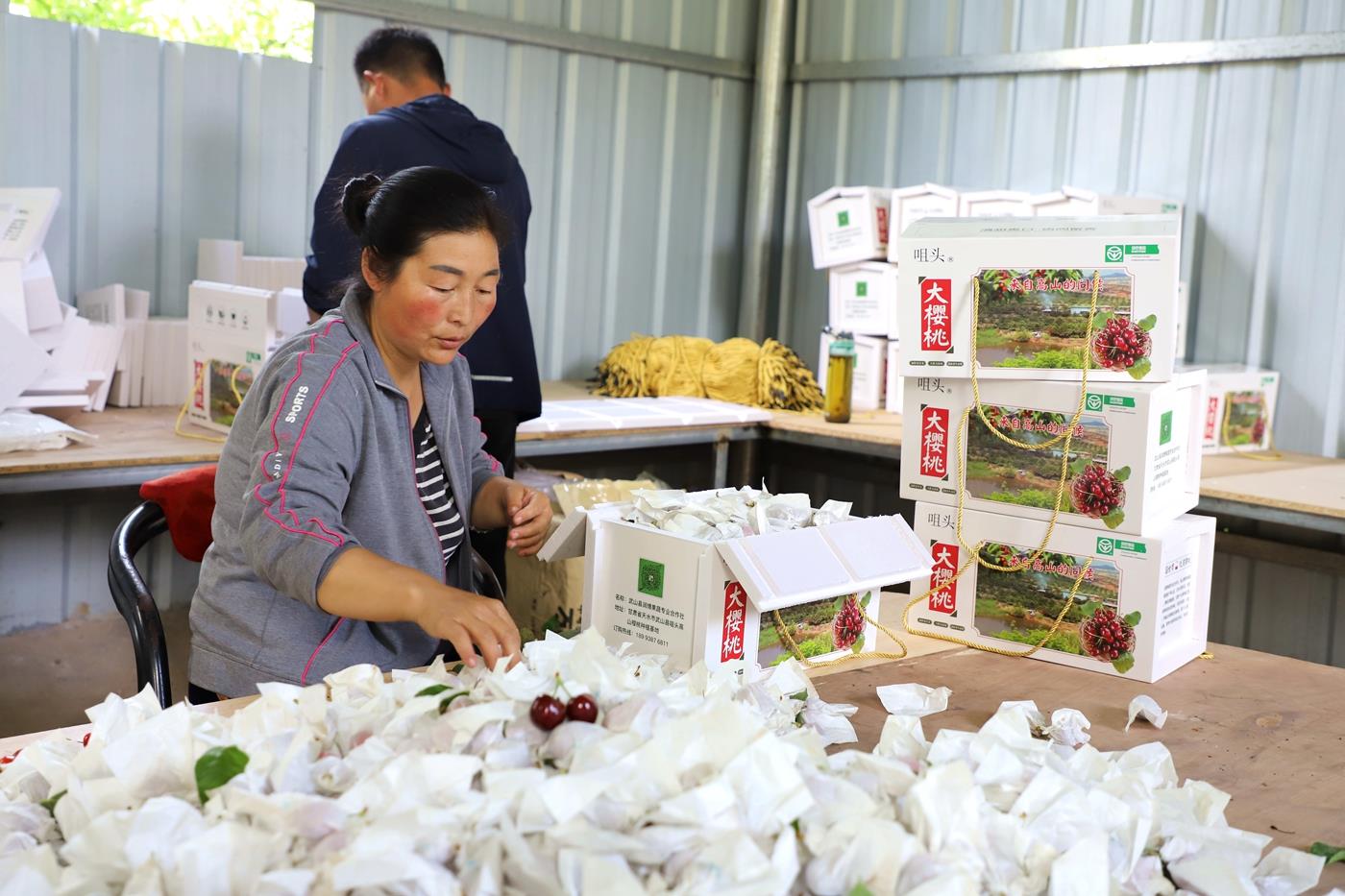 由于海拔高,花期迟,今年咀头高山樱桃受寒流影响小,加上管理得当,樱桃迎来大丰收。“我们在线上线下同时销售。线上主要发往北京、广州等一些大城市,一天能发300件1500斤。线下的话主要是游客采摘,周末的话接待人数上千了。”基地负责人告诉记者,去年樱桃销售额达到300万,随着这几年种植面积扩大到500亩,樱桃陆续挂果,预计今年销售额能达到500万。