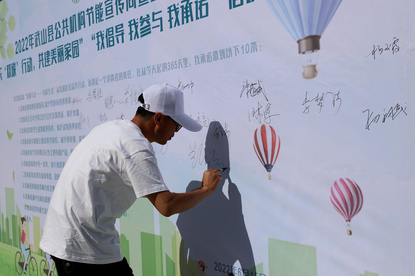 活动现场,对获得市级公共机构示范单位荣誉的代表进行了授牌;宣读了《2022年武山县公共机构节能宣传周倡议书》;各单位干部职工、学生代表签名承诺“落实‘双碳’行动,共建美丽家园”,并观看了节能宣传展板。