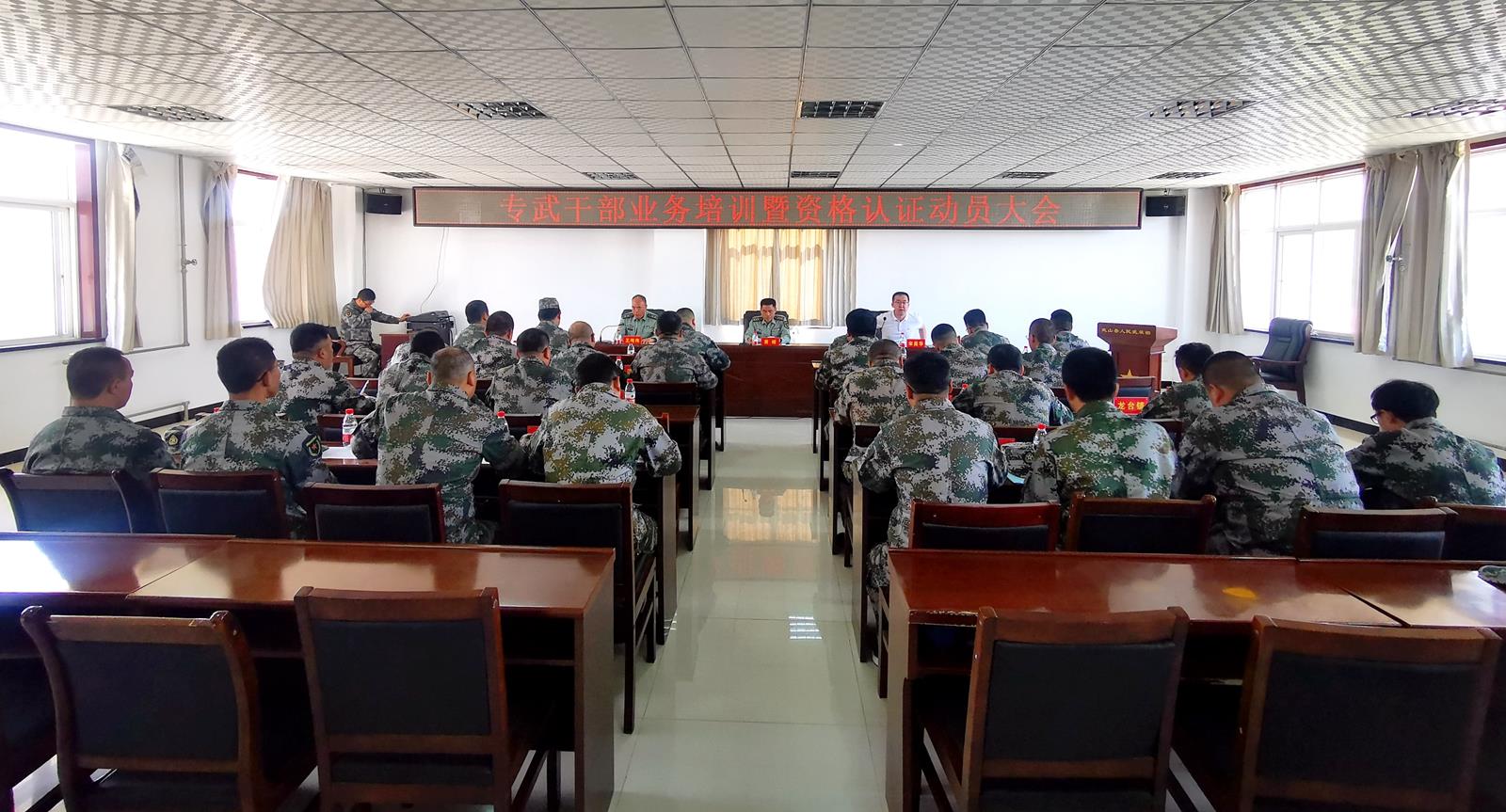 武山县融媒体中心6月14日讯(记者 李益)6月13日,武山县召开2022年专武干部业务培训暨资格认证动员大会。县委常委、组织部部长宋昌华,县人武部上校部长黄峰出席会议,县人武部机关全体人员、全县专武干部和集训教练员参加会议。