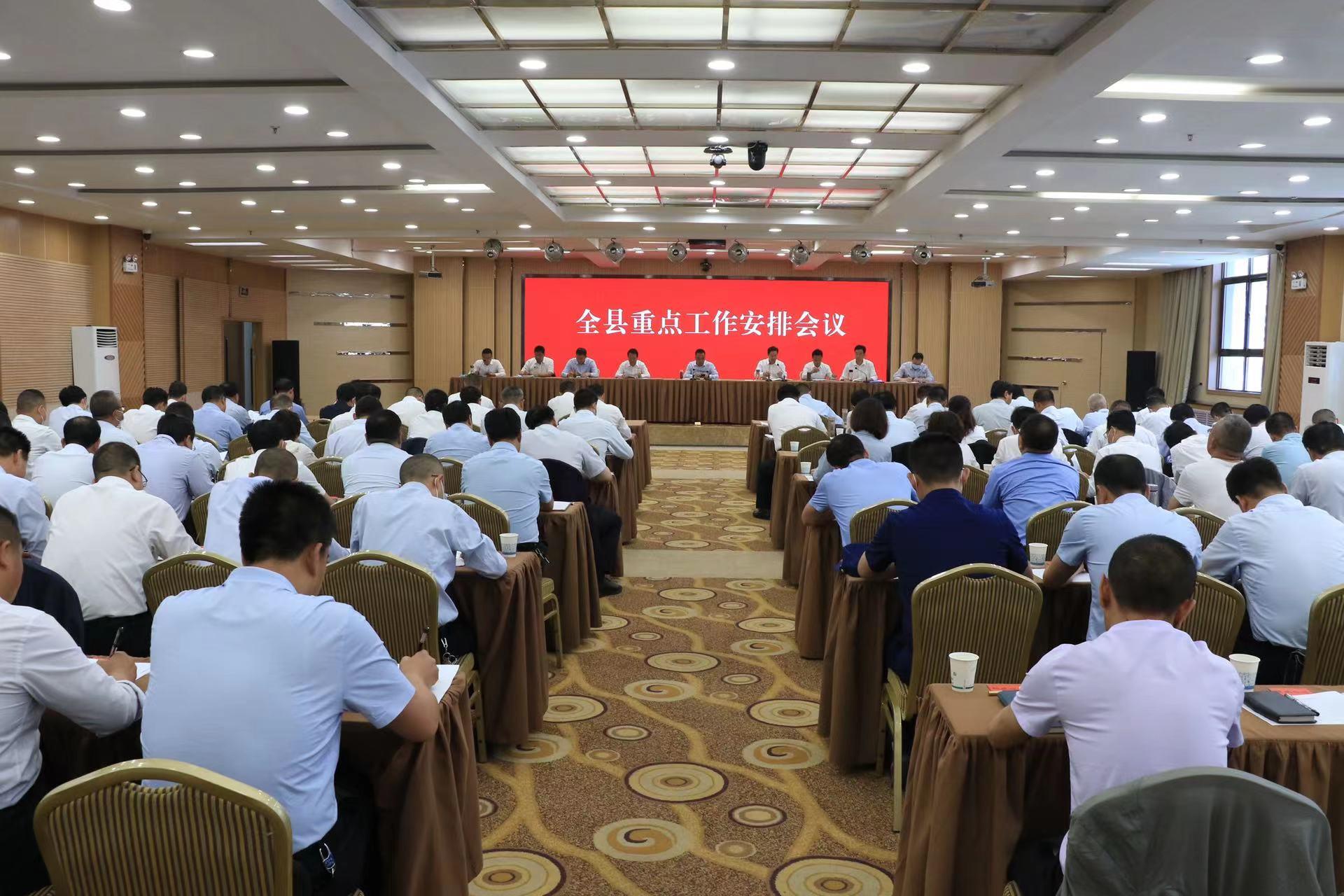武山县融媒体中心6月8日讯 (记者 赵超 包玉霞 ) 6月8日,武山县召开全县重点工作安排会议,对当前各项重点工作进行再安排、再部署。县委书记王新强出席并讲话,县委副书记、县长王志成主持会议,县领导孙德银、庞明全、李康宁、令军强、赵百祥、宋昌华、李忠平、温阿军、凌鹏亮、李峰、吴健明出席会议;县法检两长,各乡镇和县直相关部门单位、有关企业主要负责人参加会议。