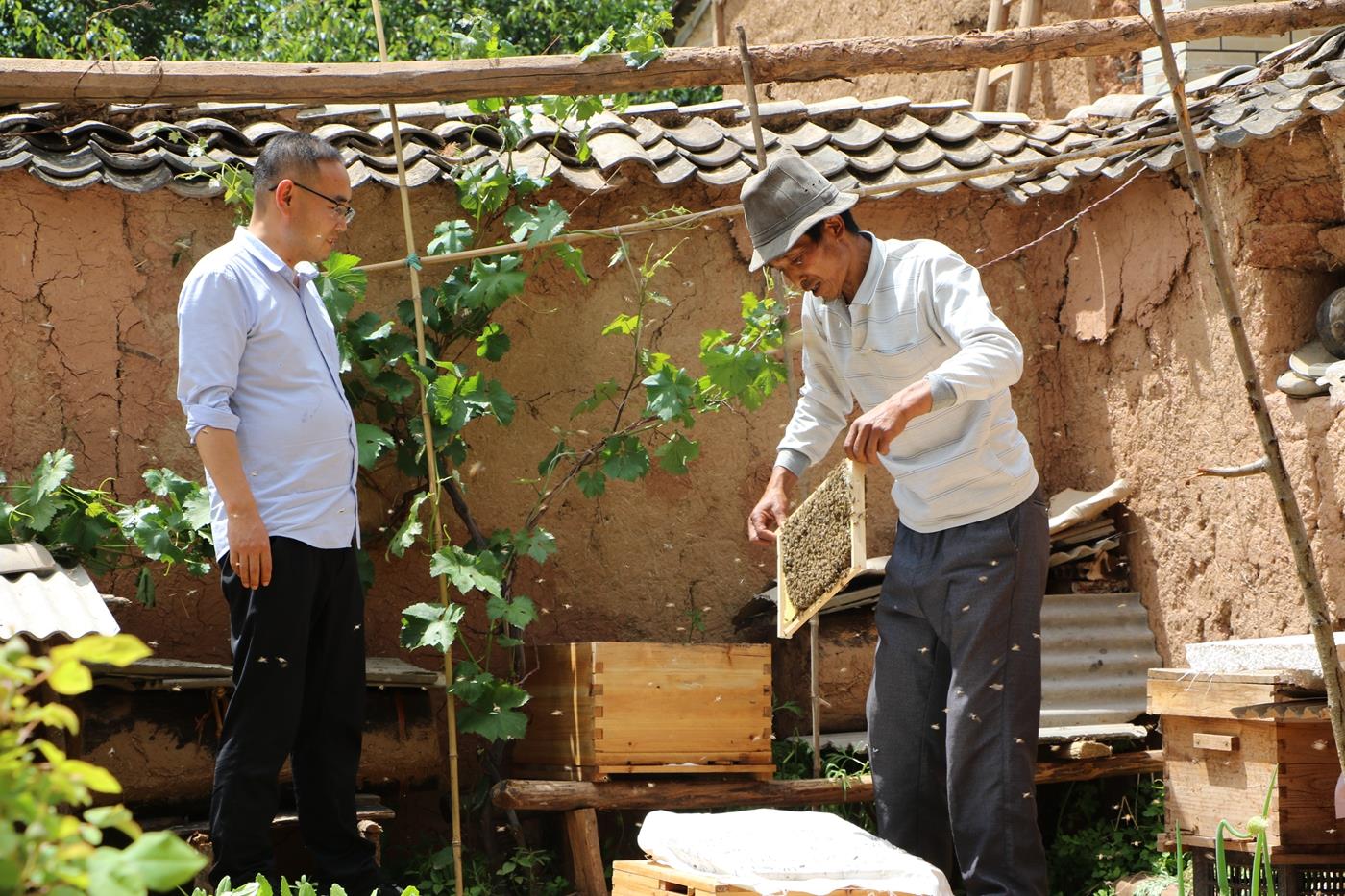 柳坪村生态环境好,山区蜜源丰富,如何把生态资源优势转化为经济优势,牟敏和搭档想尽了办法:“从去年4月份派驻到村开展工作以来,我通过实地调研,多方考察了解情况,结合柳坪村位于大美武山油菜花海核心腹地的这一资源优势和当地群众的实际,发现养殖中蜂比较适合”。