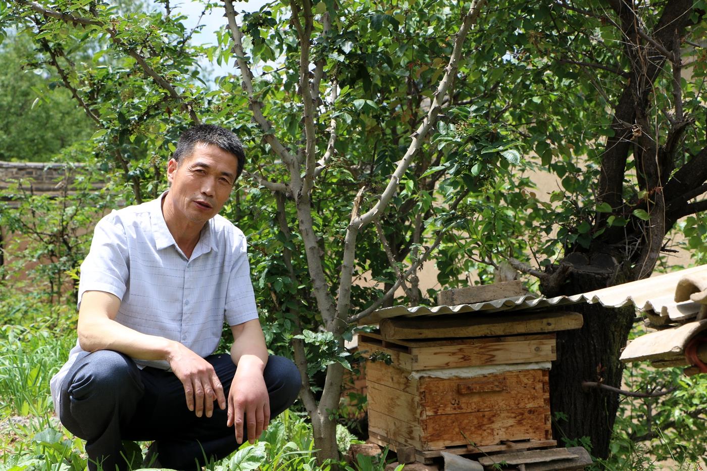 去年抱着试一试的心态开始养殖中蜂的村民包万明,本来一直以养羊为业,现在还成了养蜂的行家里手,从去年的两箱到今年的15箱,下一步还打算继续扩大规模。“咱这个地方环境养蜂特别好,蜜源好,各方面空气好,污染不大,养蜂很适合,而且养蜂效益好,今年有15窝蜂,明年就有四五十窝了。” 包万明说。