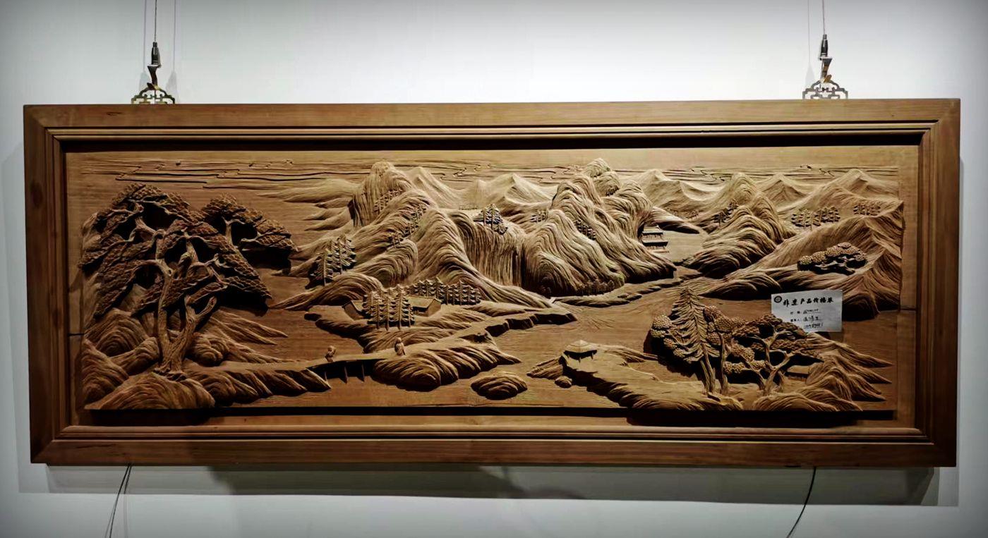 这两件成鸿生的木雕作品,正在参加武山县举办的“喜迎二十大奋进新征程•十有主题展览”,能参加如此大型展览,作品当是上乘之作。透过深雕、浮雕、浅雕等雕刻技法,玲珑剔透的工艺效果,突出了作品的立体感,生动逼真的形象栩栩如生,古朴、庄严、美观、厚重的风格扑面而来,令观者流连忘返。