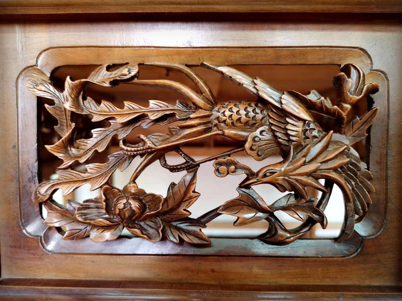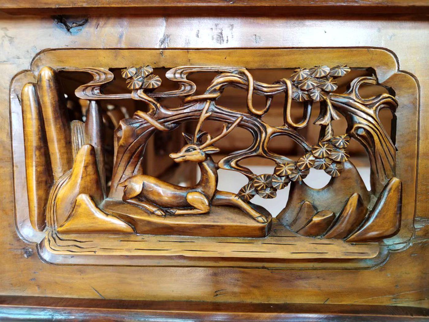 成鸿生告诉记者,他从小喜欢画画,家里祖辈几代都是木匠,只要到家里就能闻到空气中弥漫的木屑香味,听到木棰敲打刀具和锯木头的声音。完成学业以后,走上木匠的行当水到渠成。凭着画画的基础,加上勤奋好学,天赋和悟性让他很快就进入角色。“于是感到父辈做的木活不太精细,这也是时代的要求,当时生产用具居多,家具纹饰简单,造型单一,装饰性不强。” 成鸿生说,“随着人们生活水平的提高,对物质的追求也越来越高,我正赶上这个时候,所以一进入这个行当就开始做精细的木雕,家里的这副张半桌就是我的第一件木雕家具。”