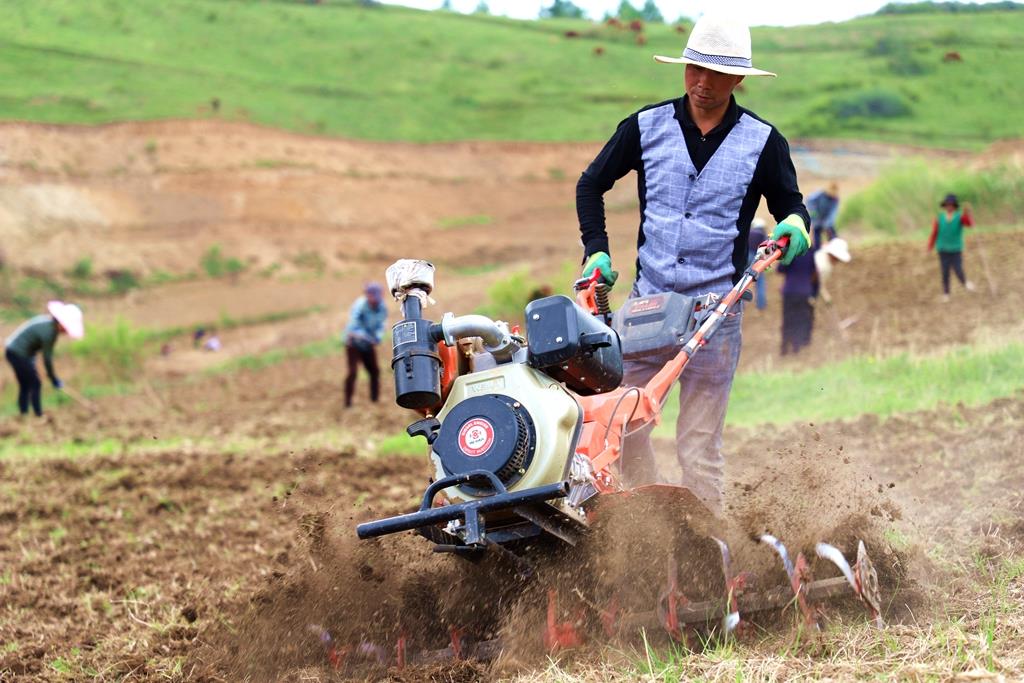 武山县融媒体中心5月24日讯(记者 彭雪 车彤摇 赵超 关正庚 兰红红)田家少闲月,五月人倍忙。这几天,武山县温泉镇李子沟村的村民们正热火朝天地对撂荒的土地进行复耕,用于种植小荞。